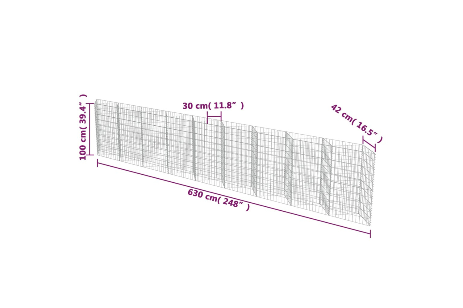 The sturdy gabion has been designed to be filled with rocks or gravel. Made of rustproof and weather-resistant galvanised steel, the raised garden bed is very stable and durable. The mesh grid is built by welding transverse and longitudinal wires at every intersection for extra stability. Moreover, you can buy more different models to build walls by placing them side by side. The gabion wall is easy to assemble.