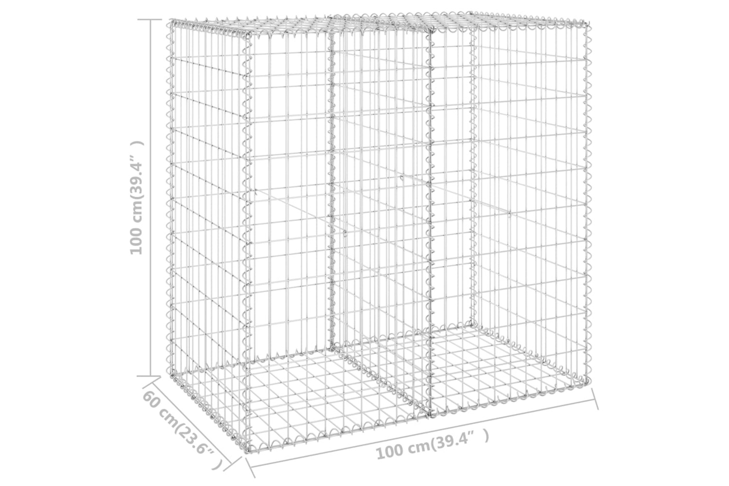 The sturdy gabion cage is designed to be filled with rocks or gravel. The retaining wall, made of rustproof and weather-resistant galvanised steel, is very stable and durable. The mesh grid is built by welding transverse and longitudinal wires at every intersection for extra stability. The gabion basket is delivered with top and bottom covers to keep the fillings fixed shape. You can even buy and add different models to build walls by placing them side by side.