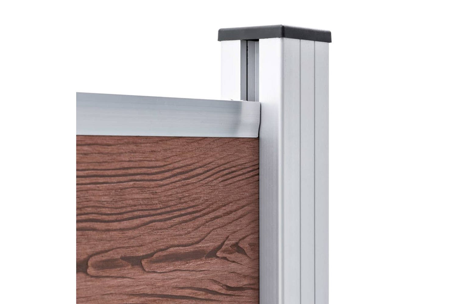 Made of WPC (wood-plastic composite), the garden fence is durable and resistant to rot or rust. The garden barrier has a wood grain print on one side and regular print on the other side, so you can choose the design you like best. Thanks to the aluminium top profile, the fence boards can be tightly attached to each other, which increases their rigidity and strength against impact.