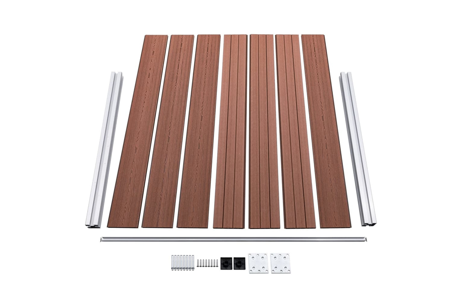 - Material: WPC (wood-plastic composite), aluminium, steel