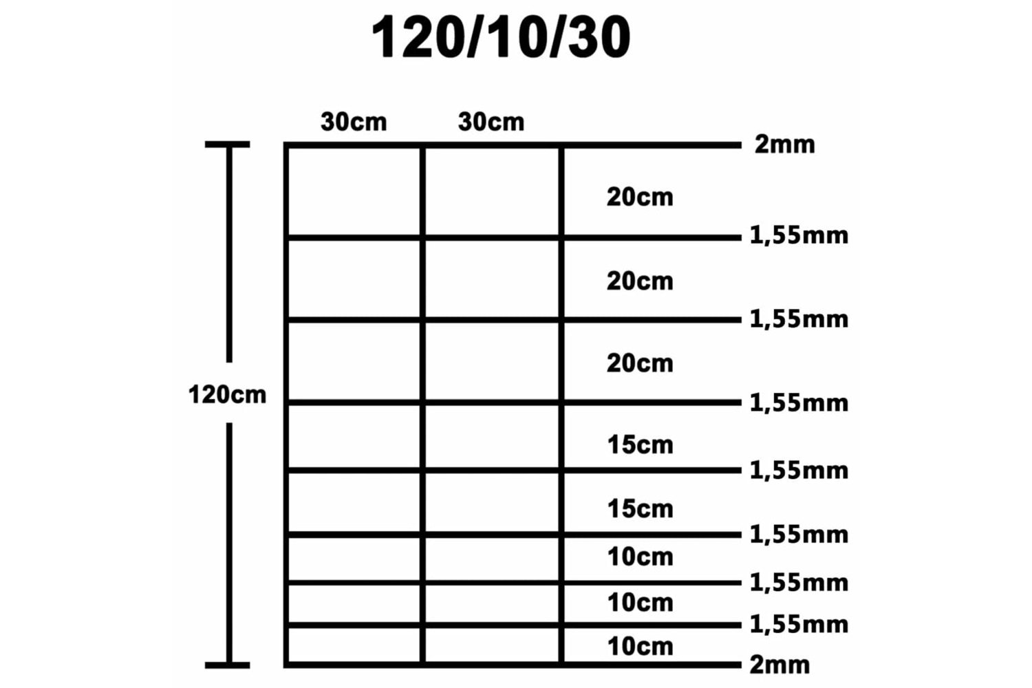 - Horizontal wire diameter (middle): 1.55 mm