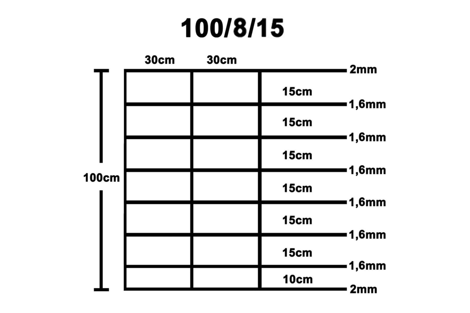 - Vertical wire distance: 15 cm