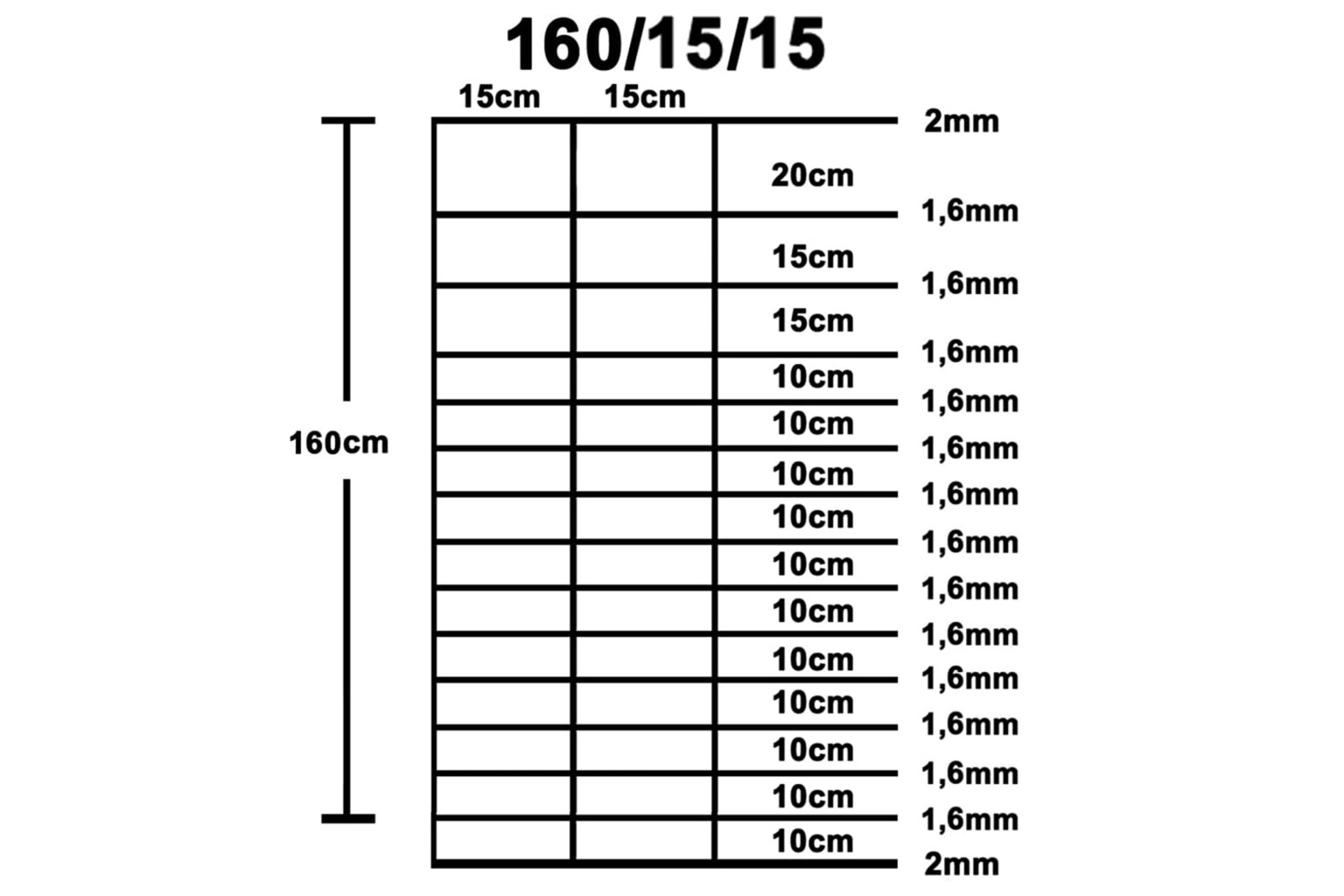 - Horizontal wire diameter (middle): 1.55 mm