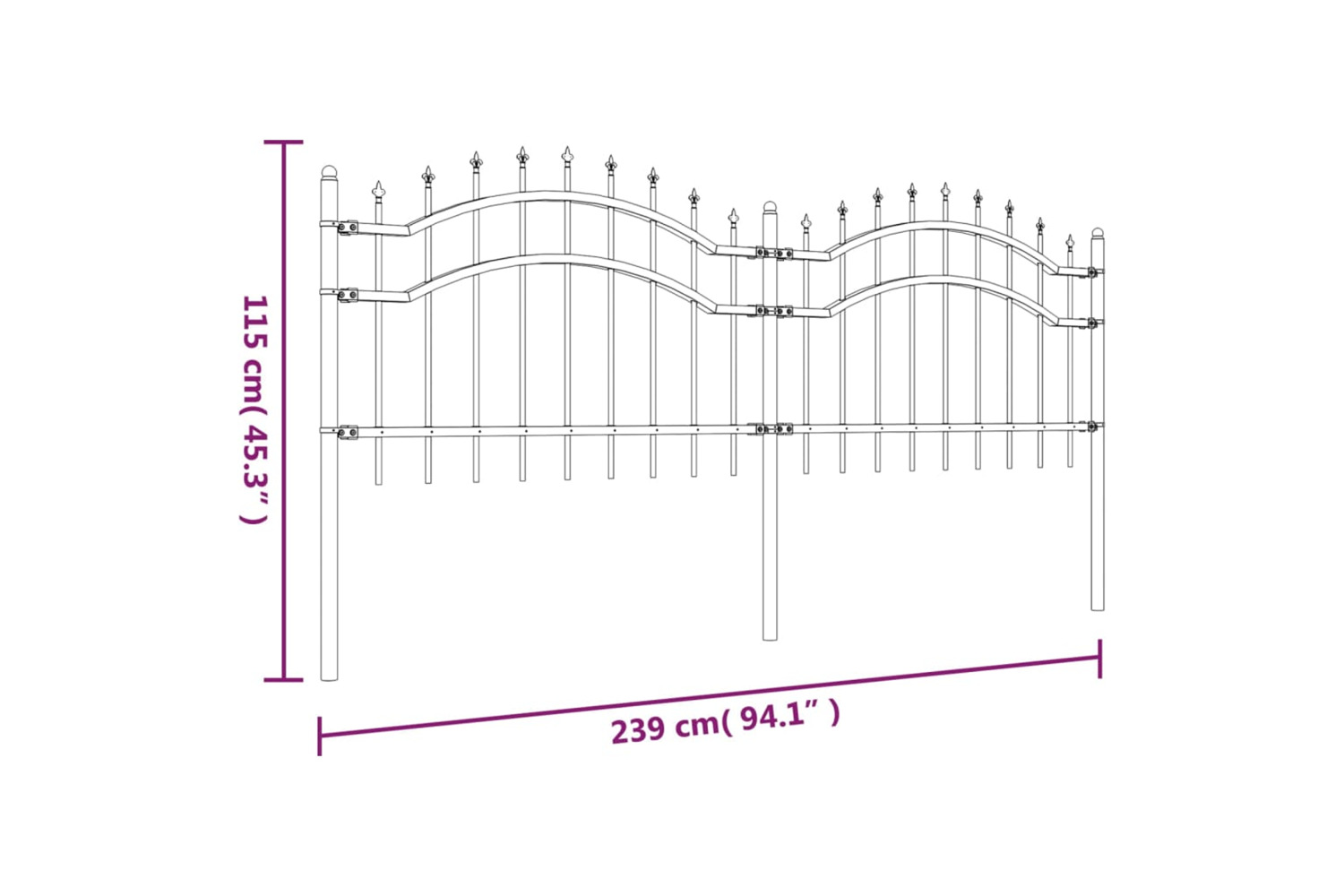 - High-security design: The metal fence provides a high degree of security with its elegant, arched top design and strong horizontal braces to reinforce the frame while forming a stunning barrier to your property.