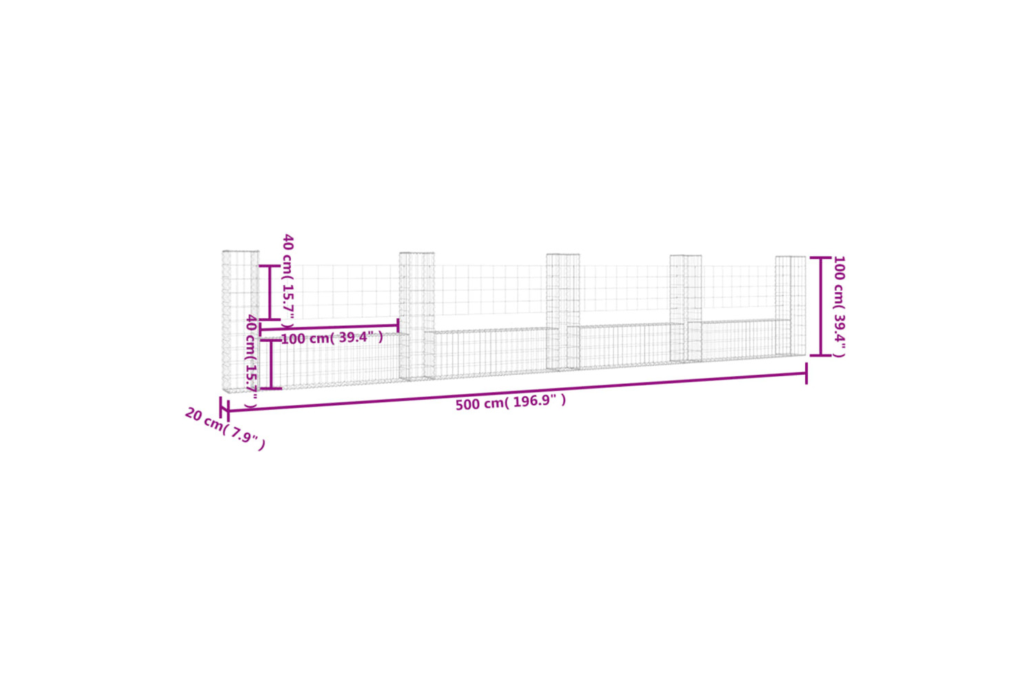 - Dimensions: 500 x 20 x 100 cm (L x W x H)