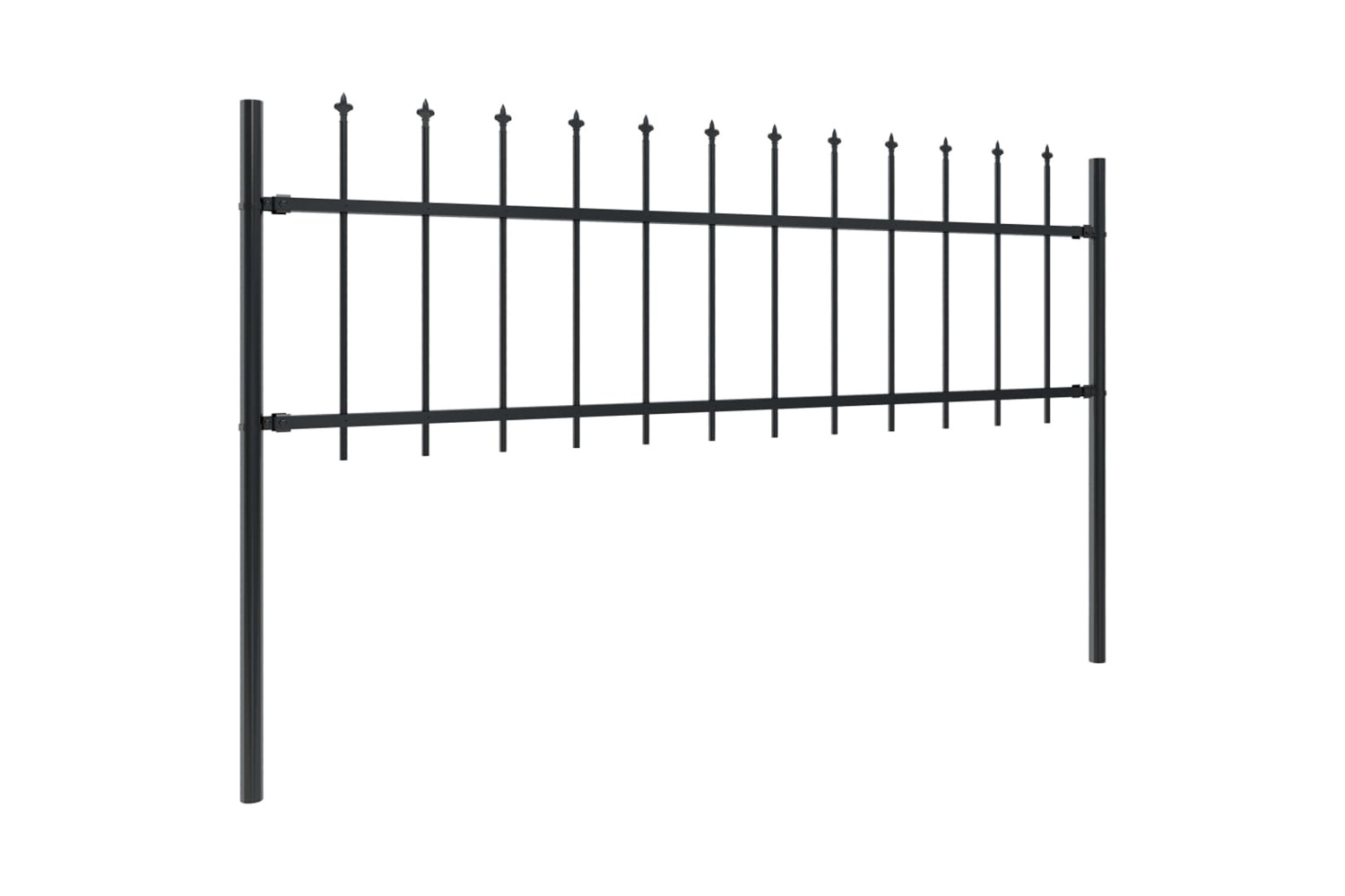With vertical bars topped with spear ends and strong horizontal brace as reinforcement to the frame, our garden fence will provide a high degree of security. Manufactured from heavy-duty, powder-coated steel, the outdoor fence is exceedingly stable, sturdy and durable. Thanks to the included mounting materials, the garden fence is easy to assemble.
