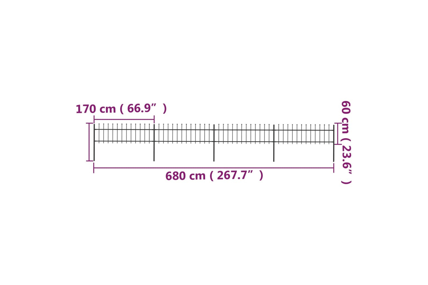 - Fence panel height: 60 cm