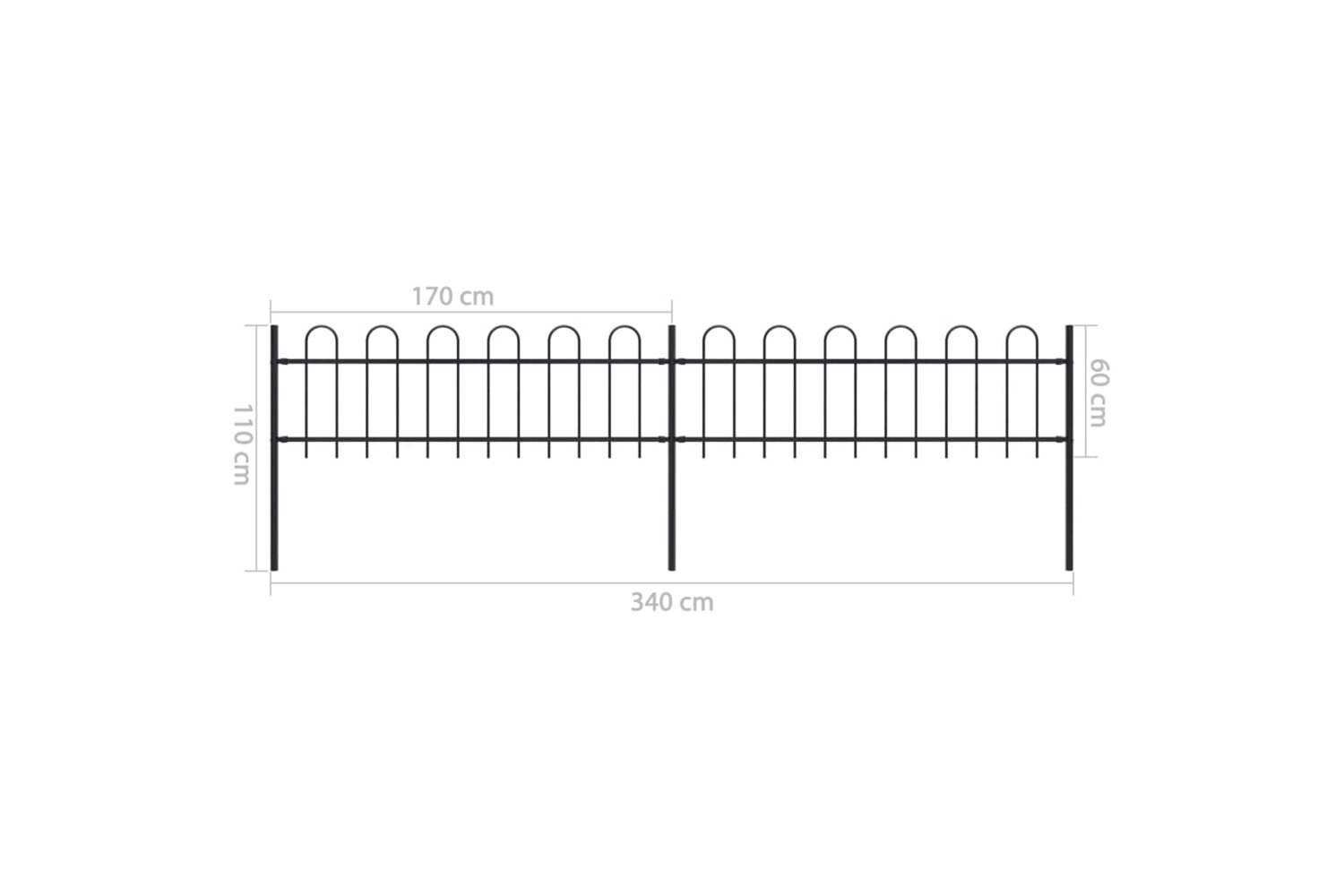 Create an elegant fence around your garden, home, or walkway with our garden fence! Our decorative steel garden fence, consisting of 2 fence panel and 3 posts, has a total length of 3.4 metres. It will form a sturdy, safe and maintenance-free perimeter barrier for your garden, home, or business property.
