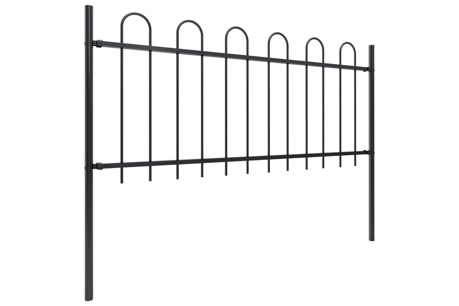 With vertical bars with hoop top and strong horizontal brace as reinforcement to the frame, our garden fence will provide a high degree of security. Manufactured from heavy-duty, powder-coated steel, the outdoor fence is very strong and thus stable, sturdy and durable. Thanks to the included mounting materials, the garden fence is easy to assemble.