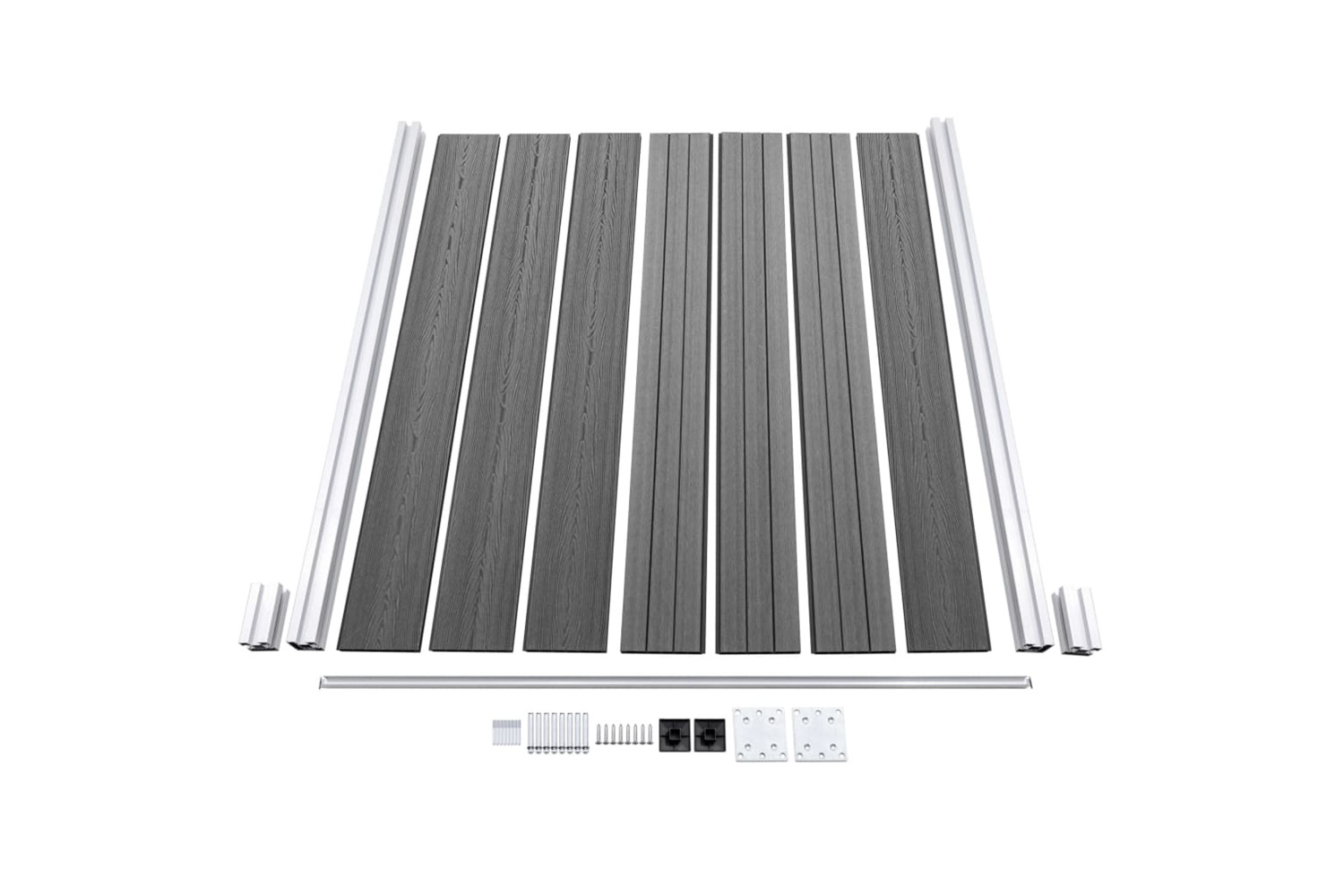 - Material: Wood-plastic composite + aluminium ending bar and posts