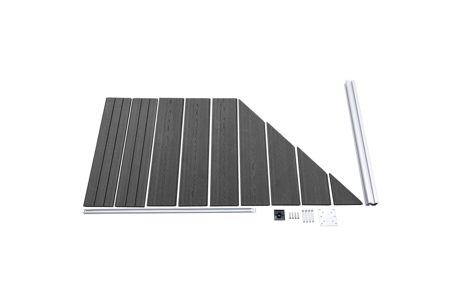 - Material: WPC (wood-plastic composite), aluminium, steel