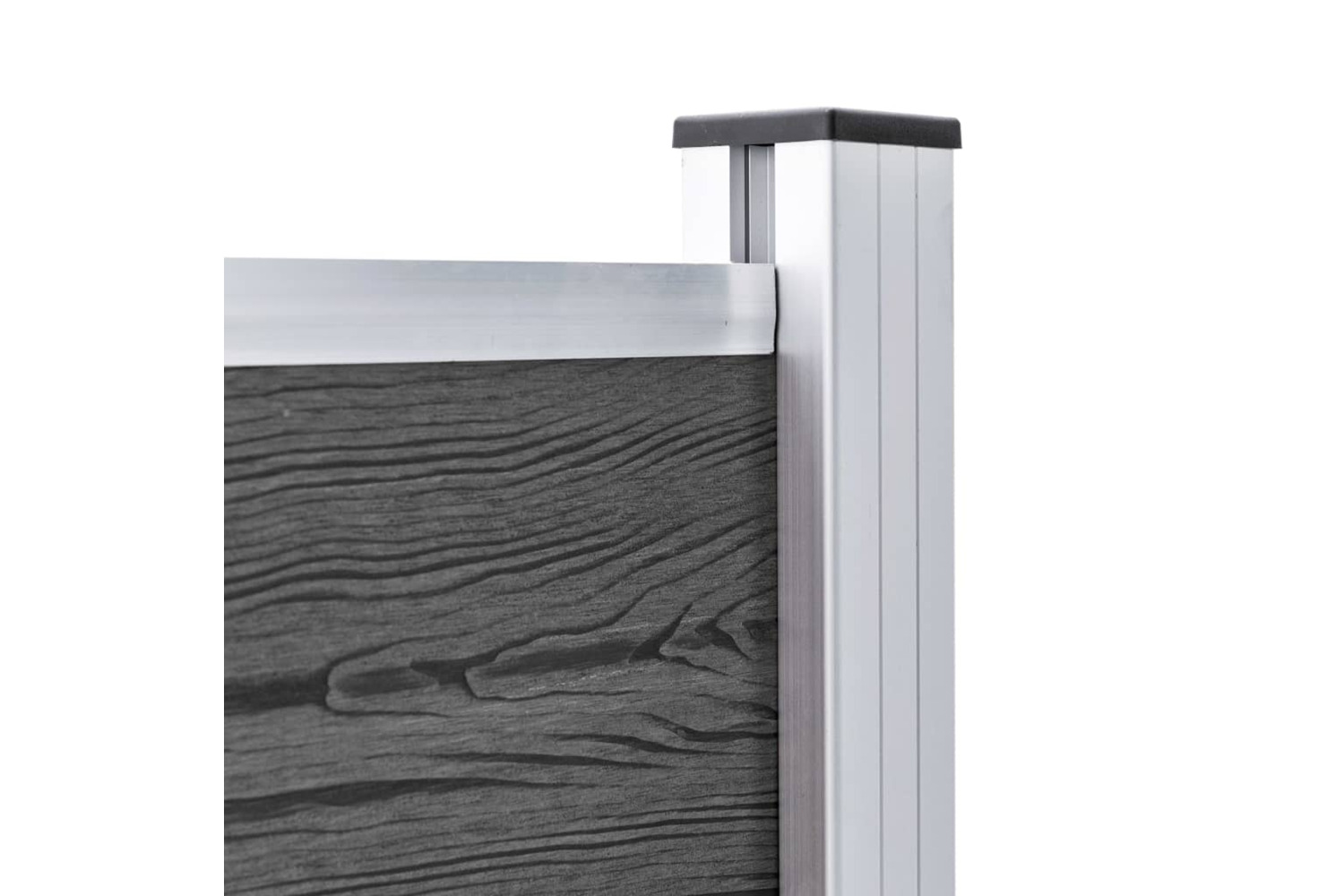 Made of WPC (wood-plastic composite), the garden fence is durable and resistant to rot or rust. The garden barrier has a wood grain print on one side and regular print on the other side, so you can choose the design you like best. Thanks to the aluminium top profile, the fence boards can be tightly attached to each other, which increases their rigidity and strength against impact.