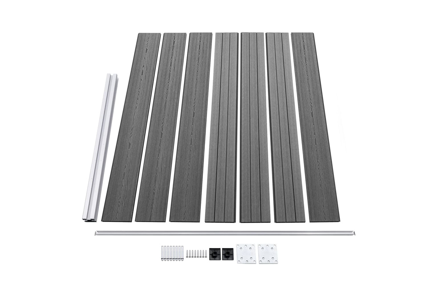 - Material: WPC (wood-plastic composite), aluminium, steel