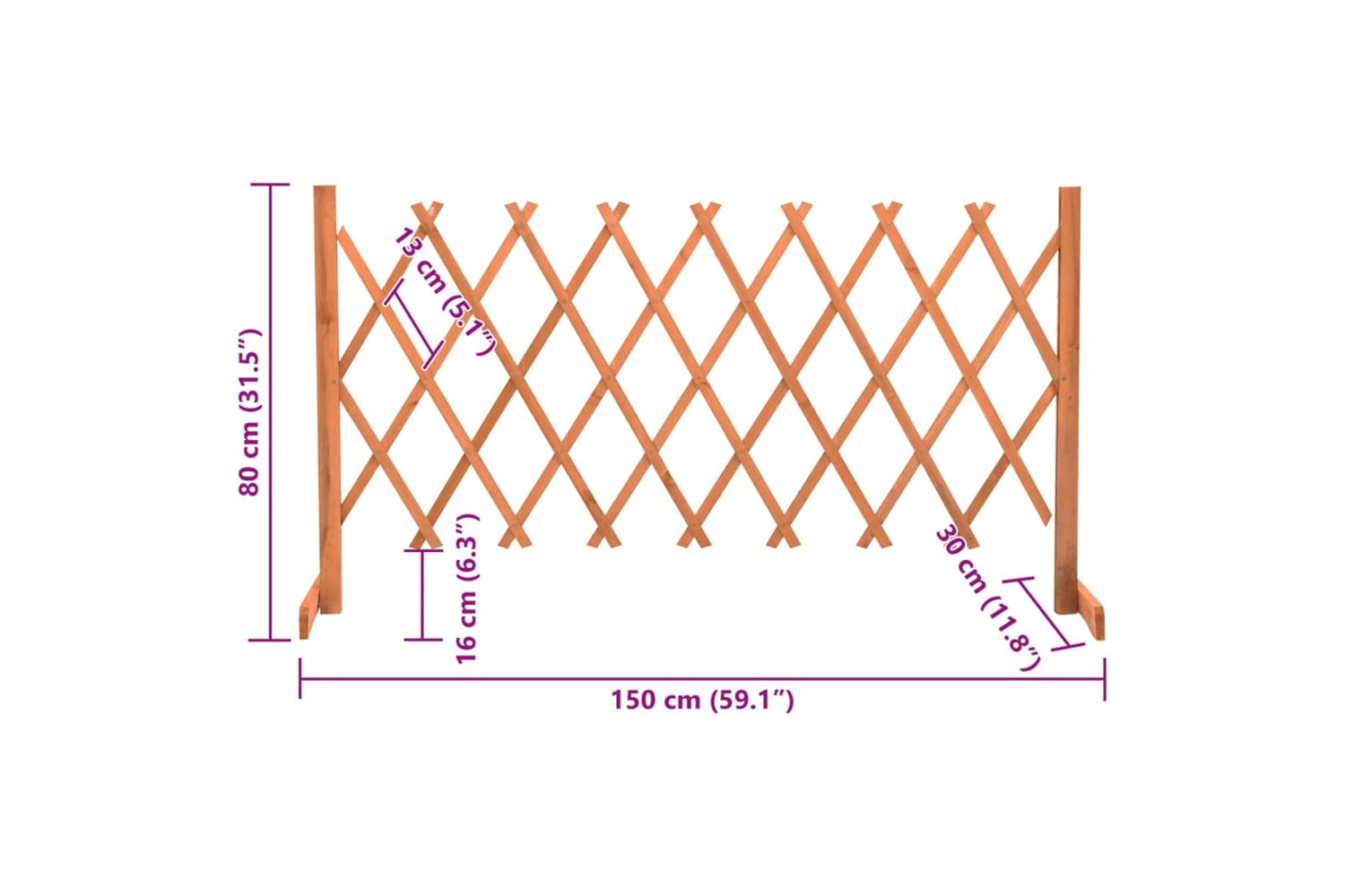This fence panel, made of solid firwood, is sturdy and suitable for outdoor use. Each trellis fence can be extended up to 150 cm in width. Its expandable design makes the garden barrier compatible with gardens of all sizes. It also looks excellent along flowerbeds or walkways.