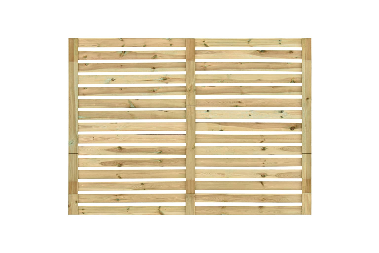 This sturdy and durable wooden garden fence panel is made of green impregnated pinewood, which is rot resistant and suitable for outdoor use. The horizontal slats provide privacy while still letting through sunlight for your plants and flowers.
