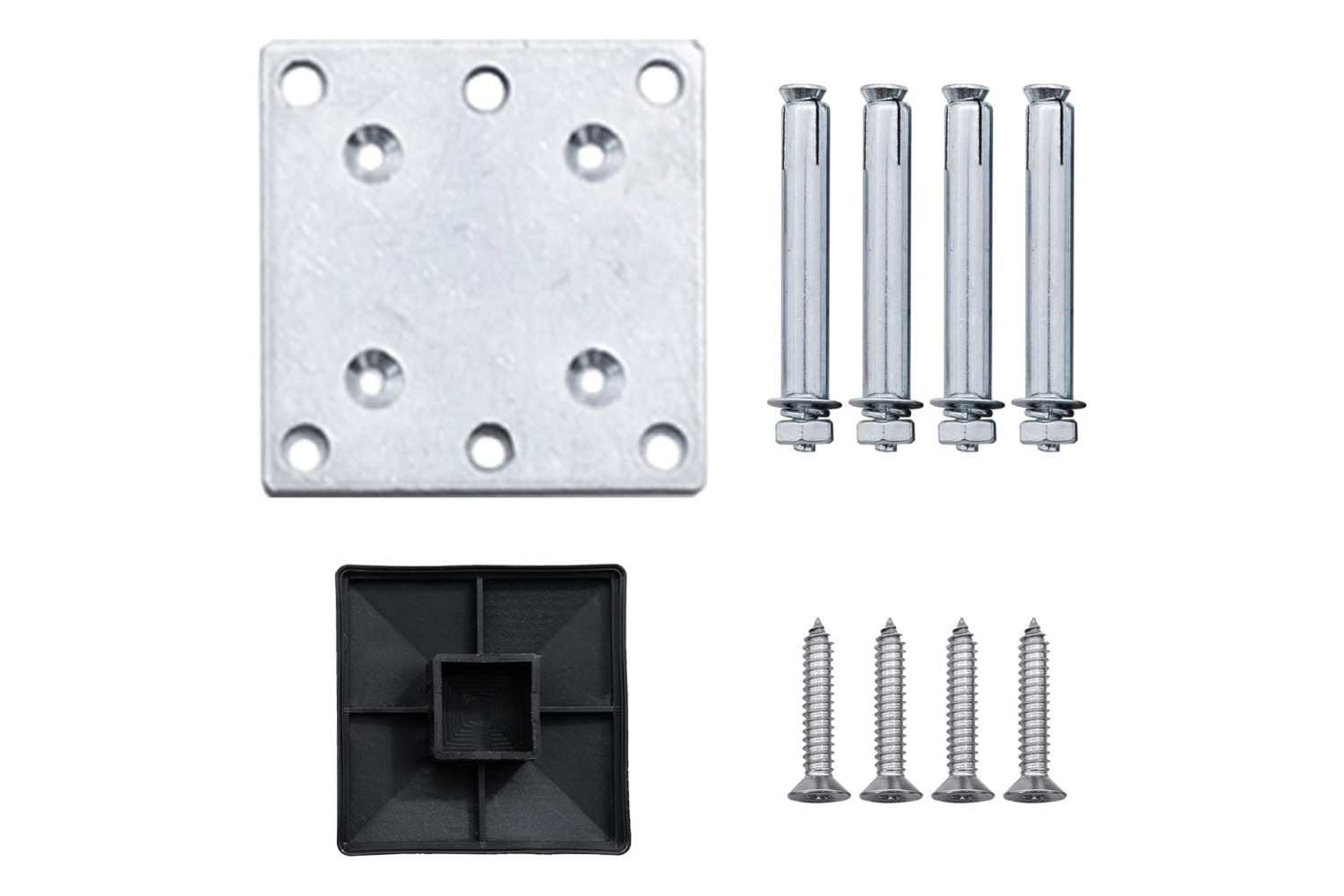 Designed with the modular system, the fence boards are easy to install and allow you to expand the fence freely. These posts feature three slots, which enable you to assemble the fence in various ways, for example, in a straight line (180 degrees), right angle (90 degrees) or "T"-shape. The multifunctional steel feet can be fixed in two ways. The first one is by screwing them onto a surface, using the supplied anchor screws. The second way is by anchoring them into a cement base, using the ground spike (not included).
