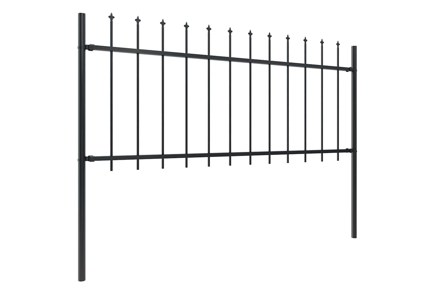 With vertical bars topped with spear ends and strong horizontal brace as reinforcement to the frame, our garden fence will provide a high degree of security. Manufactured from heavy-duty, powder-coated steel, the outdoor fence is exceedingly stable, sturdy and durable. Thanks to the included mounting materials, the garden fence is easy to assemble.