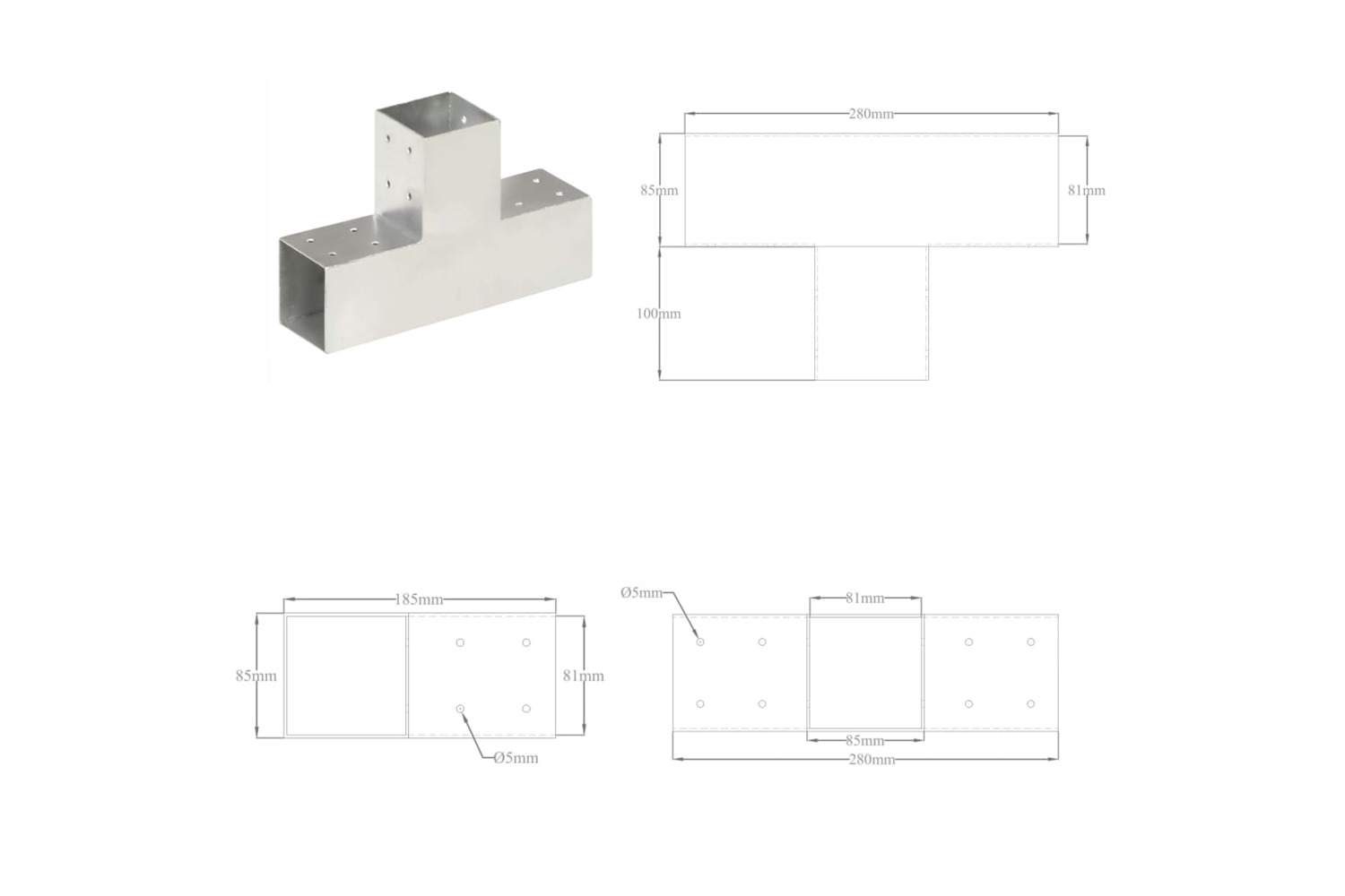 The electro-galvanised connector can easily connect and stable the beams. All the connectors are pre-drilled. This wood beams shoe is for 3 square 81mm wood beams.