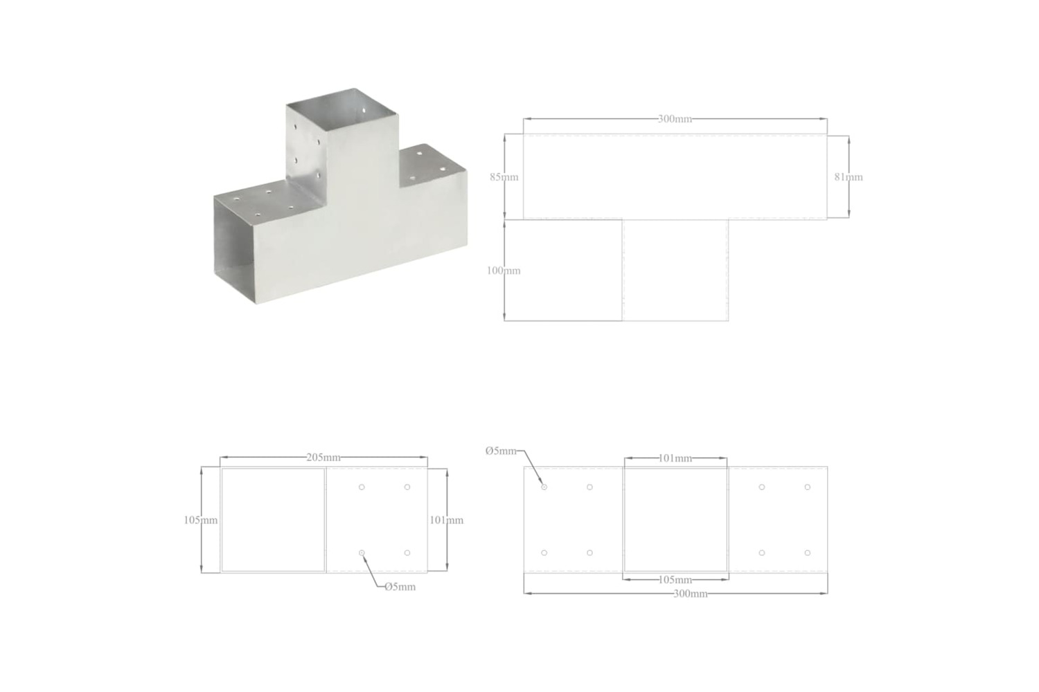 The electro-galvanised connector can easily connect and stable the beams. All the connectors are pre-drilled. This wood beams shoe is for 3 square 101mm wood beams.