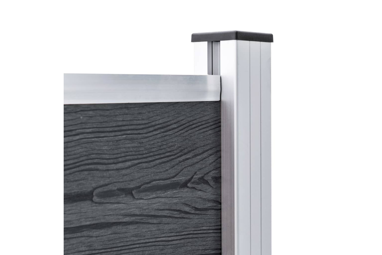 Our garden fence posts with caps are made of aluminium, which are weather-resistant. These outdoor posts are compatible with fence boards of 2 cm thickness. With this post, the fence can be made into a straight line or in a 90 degree corner, due to the inserts in the post.