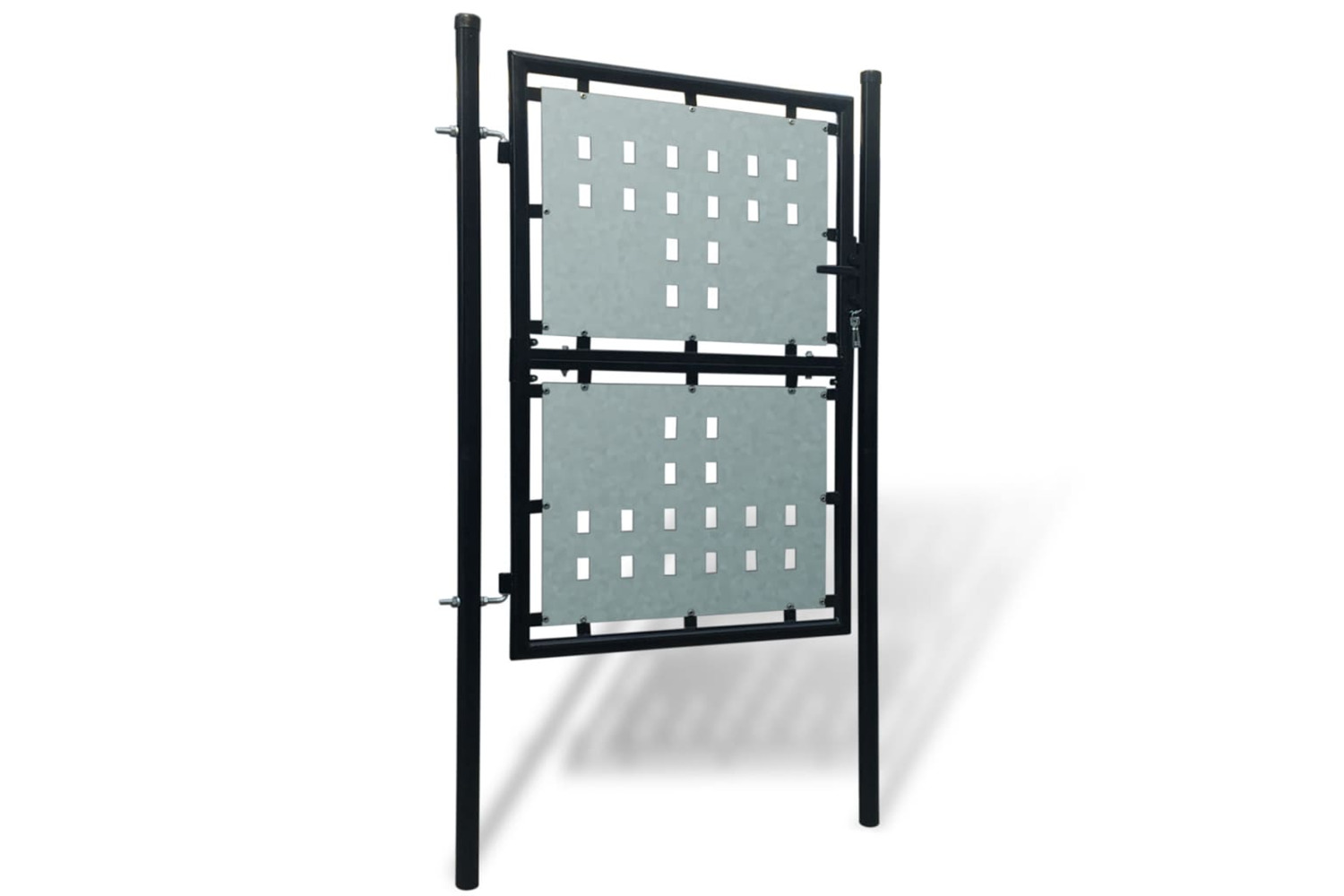 The galvanized sheets with decorative hole patterns reinforce the frame, so our garden gate will provide a high degree of security, while forming a fabulous entryway onto your property. Manufactured from heavy-duty steel, the gate is powder-coated against rust and corrosion.