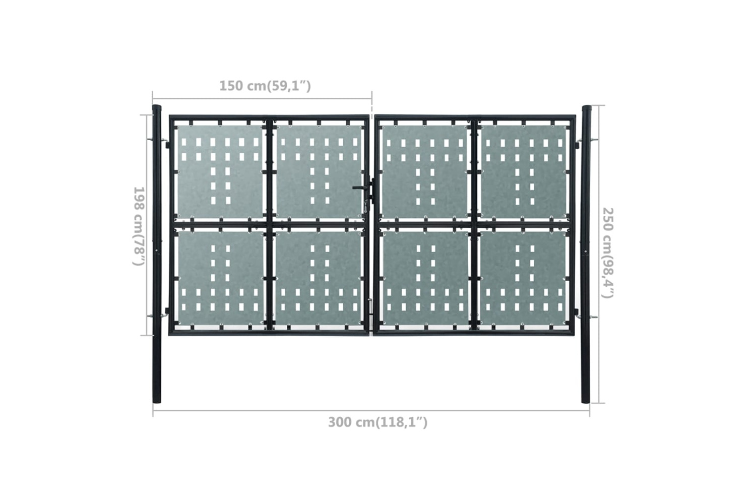 The galvanized sheets with decorative hole patterns reinforce the frame, so our garden gate will provide a high degree of security, while forming a fabulous entryway onto your property. Manufactured from heavy-duty steel, the gate is powder-coated against rust and corrosion.
