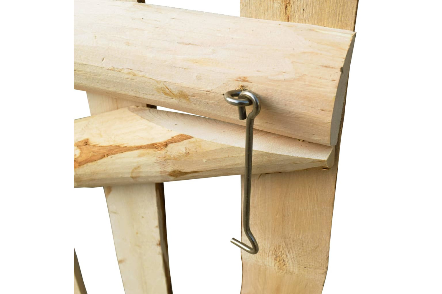The strong fence gate is made up of vertical pickets and horizontal and diagonal crosspieces, which makes it sturdy and durable. The garden gate is delivered with metal hinges, screws and a cabin hook.