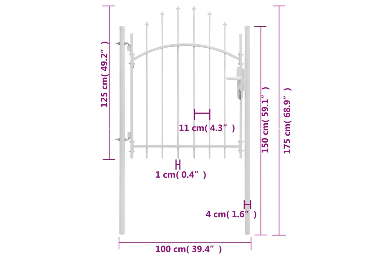 Thanks to its elegant, arched top design and strong horizontal braces to reinforce the frame, our garden gate will provide a high degree of security, while forming a fabulous entryway onto your property. Manufactured from heavy-duty steel, the gate is powder coated against rust and corrosion. This fence gate is equipped with a locking system and comes with two solid posts along with sturdy hinges for easy installation.