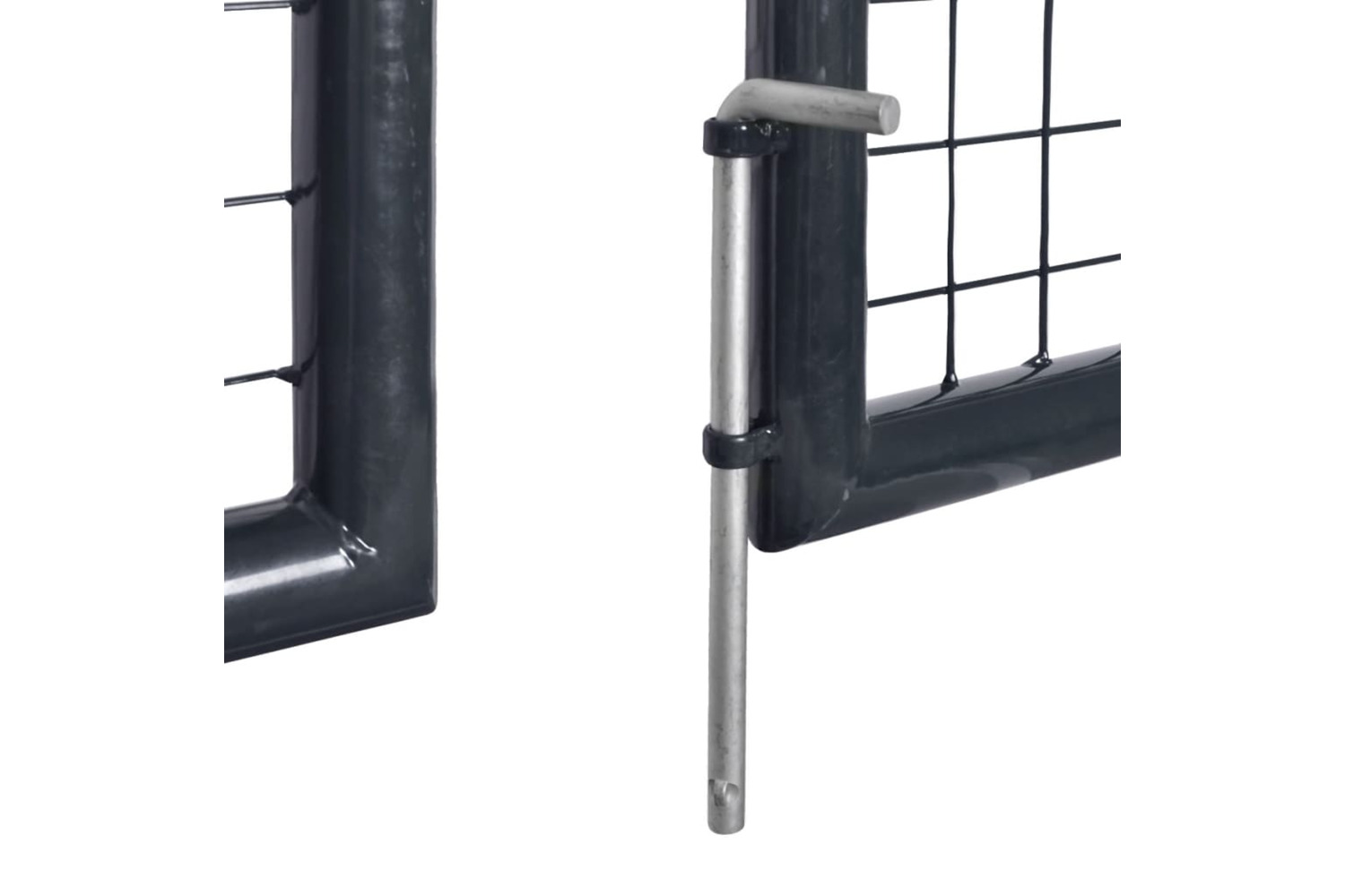 The garden gate is perfect in workmanship and manufactured from galvanised steel with a powder-coated finish, which is rust resistant and forms a sturdy construction. It has two side posts with bolt hinges for easy installation. It also has a ground stake for the large bottom bolt, which ensures the gate can be locked well.