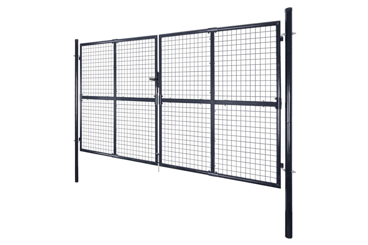 The garden gate is perfect in workmanship and manufactured from galvanised steel with a powder-coated finish, which is rust resistant and forms a sturdy construction. It has two side posts with bolt hinges for easy installation. It also has a ground stake for the large bottom bolt, which ensures the gate can be locked well.