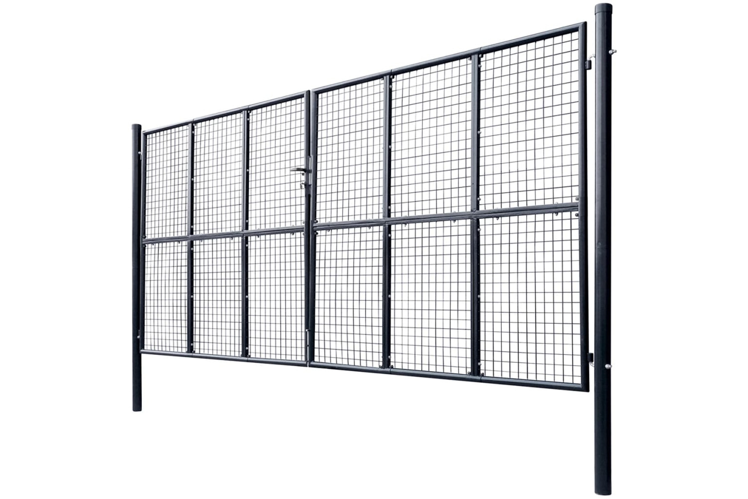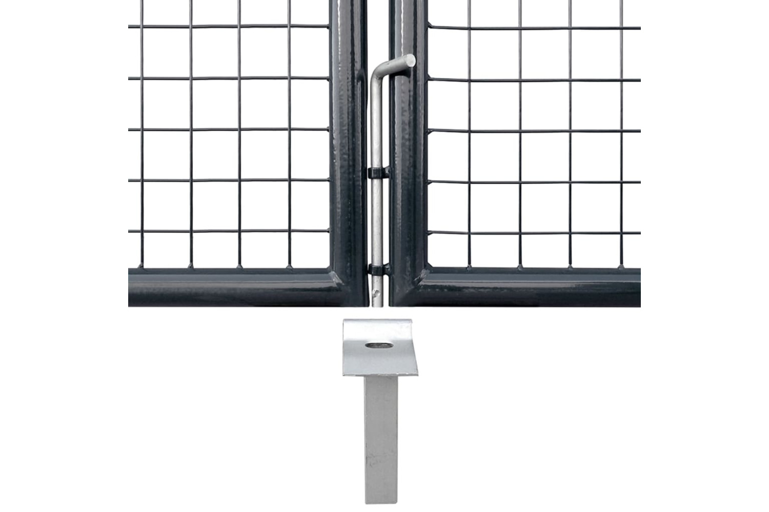 The garden gate is perfect in workmanship and manufactured from galvanised steel with a powder-coated finish, which is rust resistant and forms a sturdy construction. It has two side posts with bolt hinges for easy installation. It also has a ground stake for the large bottom bolt, which ensures the gate can be locked well.