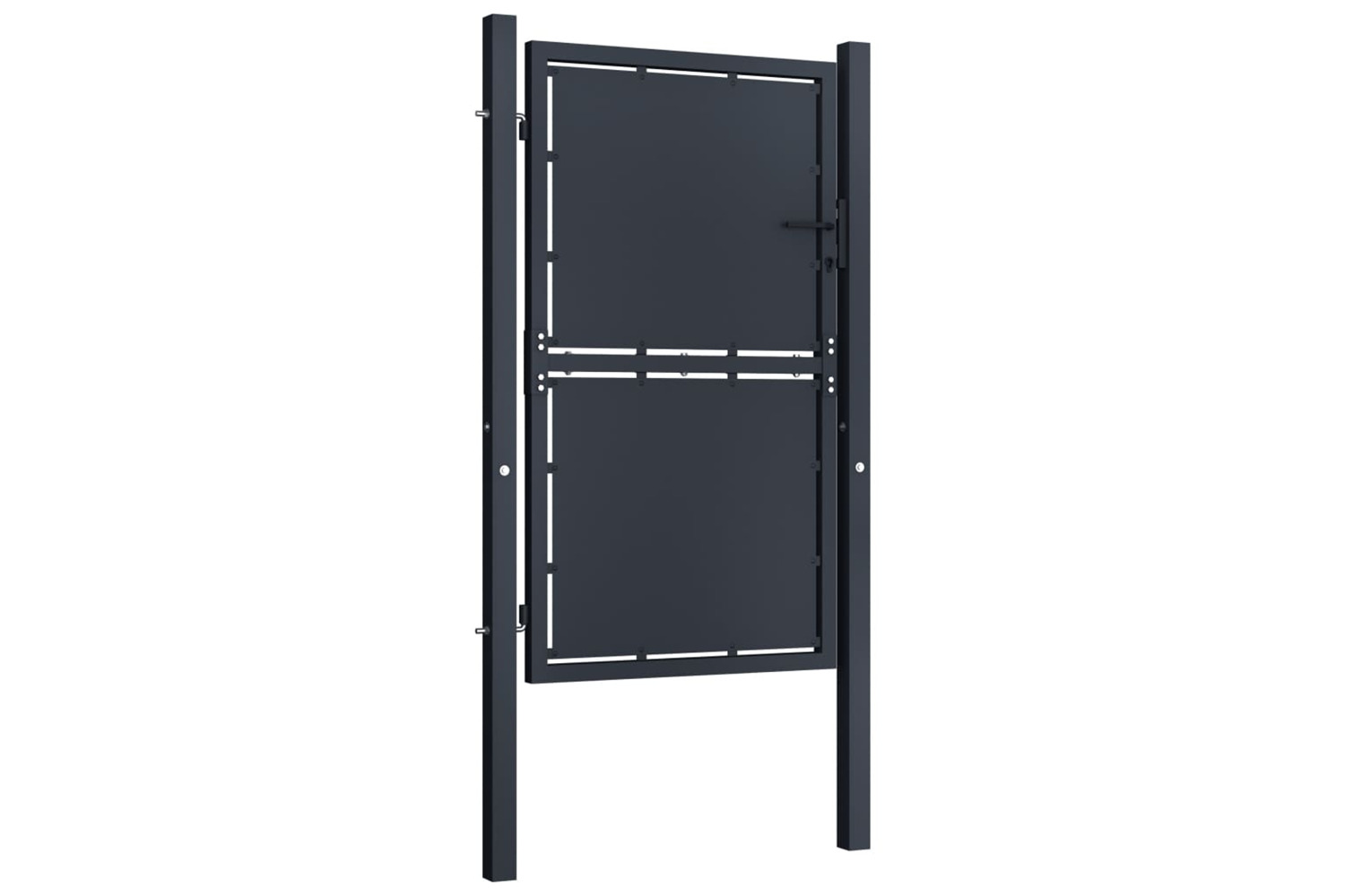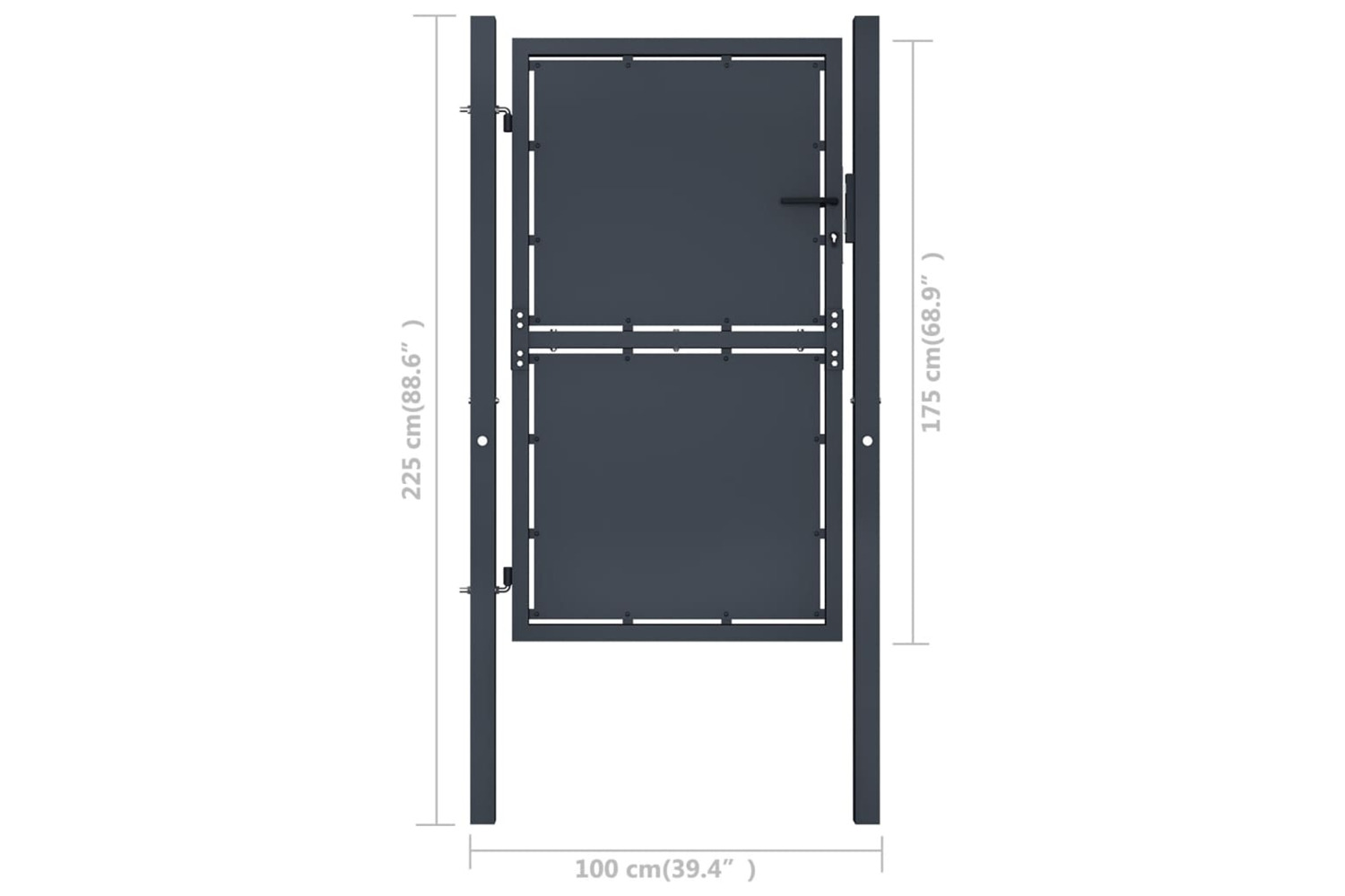 The garden gate is made of steel, which ensures its excellent durability and stability. Thanks to its tight structure, the fence gate gives extra rigidity. Additionally, our garden gate will provide a high degree of security and additional privacy, while forming a fabulous entryway onto your property. This gate also comes with two solid posts along with sturdy hinges for easy installation.