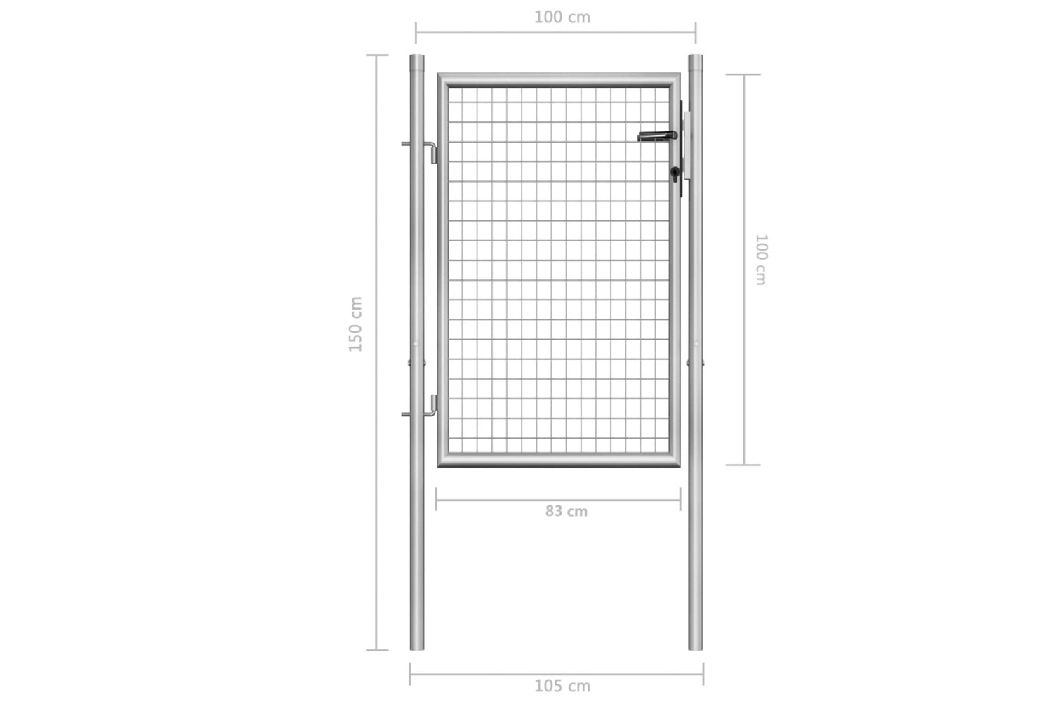 Welded with thick vertical wires and horizontal wires to give extra rigidity, our garden gate will provide a high degree of security, while forming a fabulous entryway onto your property. Manufactured from heavy-duty steel, the gate is galvanised against rust and corrosion. Additionally, this fence gate comes complete with sturdy hinges, and a heavy-duty locking system with 3 matching keys. The gate is easy to assemble.