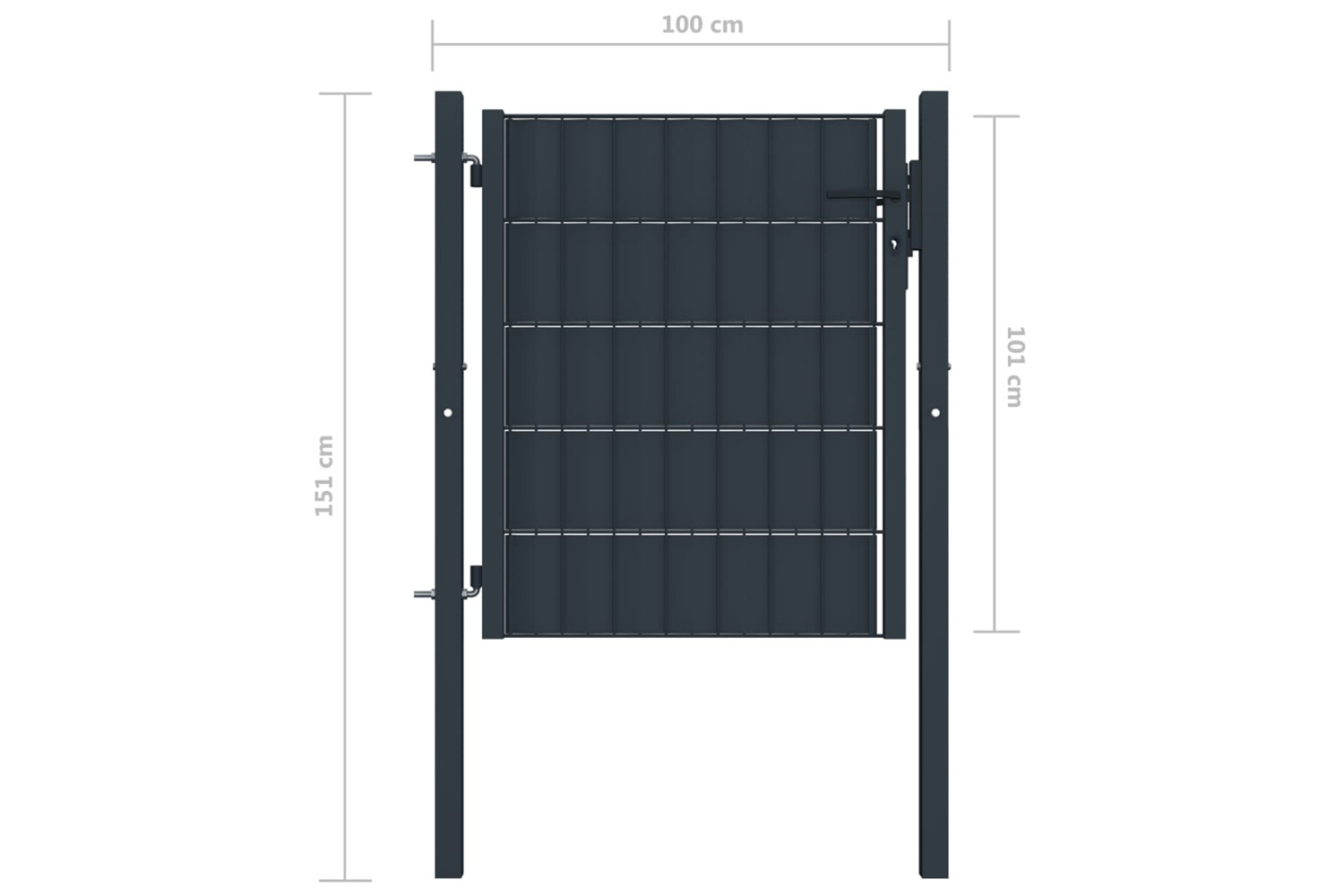 The garden gate is made of PVC film and steel, which ensures its excellent durability and stability. Thanks to its tight structure, the fence gate gives extra rigidity. Additionally, our garden gate will provide a high degree of security and additional privacy, while forming a fabulous entryway onto your property. This gate also comes with two solid posts along with sturdy hinges for easy installation.
