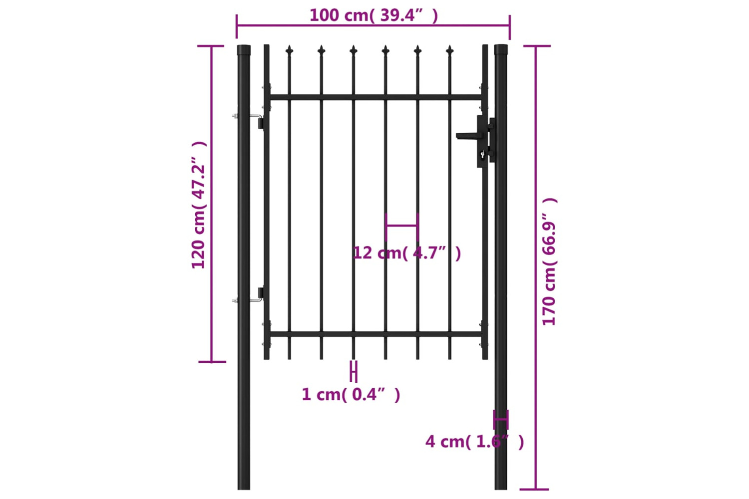 With vertical bars topped with spike ends and strong horizontal brace as the reinforcement, our garden gate will provide a high degree of privacy and security, while forming a fabulous entryway to your property. Manufactured from heavy-duty steel, the gate is powder-coated to protect against rust and corrosion.
