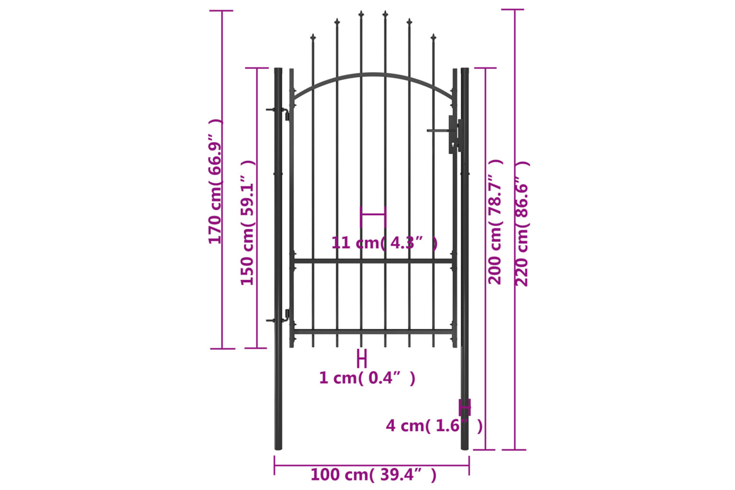 Thanks to its elegant, arched top design and strong horizontal braces to reinforce the frame, our garden gate will provide a high degree of security, while forming a fabulous entryway onto your property. Manufactured from heavy-duty steel, the gate is powder coated against rust and corrosion. This fence gate is equipped with a locking system and comes with two solid posts along with sturdy hinges for easy installation.