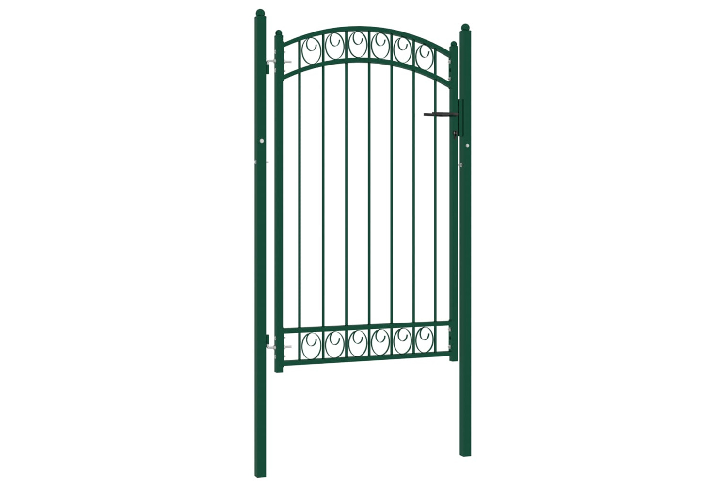 Thanks to its elegant arched top design and strong horizontal braces to reinforce the frame, this garden gate provides a high degree of security while forming a fabulous entryway onto your property. Manufactured from heavy-duty steel, the fence gate has a sturdy construction and has been powder coated against rust and corrosion. It comes with two solid posts along with sturdy hinges for easy installation, and a locking system with three matching keys is also included in delivery.