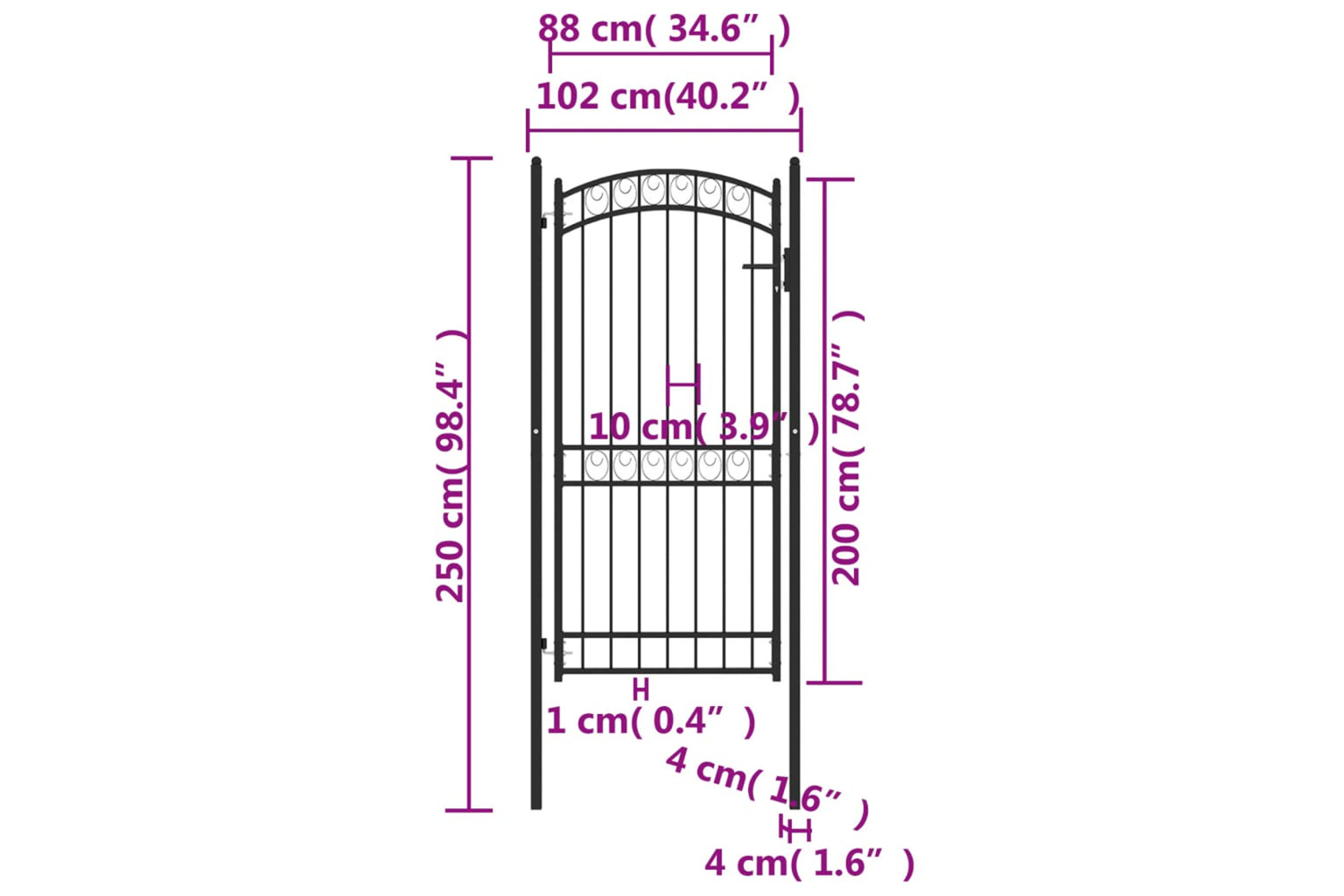 Thanks to its elegant arched top design and strong horizontal braces to reinforce the frame, this garden gate provides a high degree of security while forming a fabulous entryway onto your property. Manufactured from heavy-duty steel, the fence gate has a sturdy construction and has been powder coated against rust and corrosion. It comes with two solid posts along with sturdy hinges for easy installation, and a locking system with three matching keys is also included in delivery.