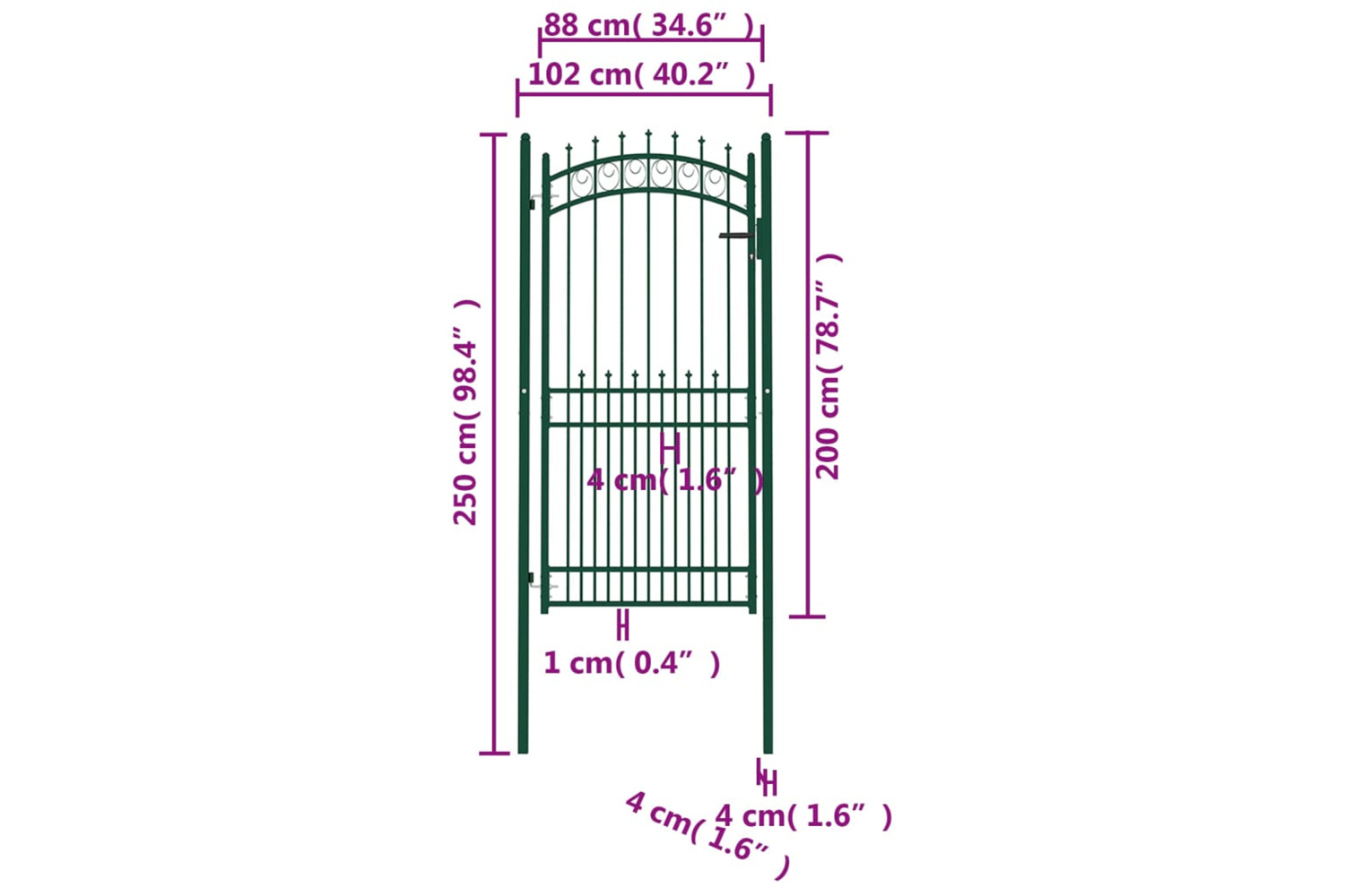 - Gate panel height: 200 cm