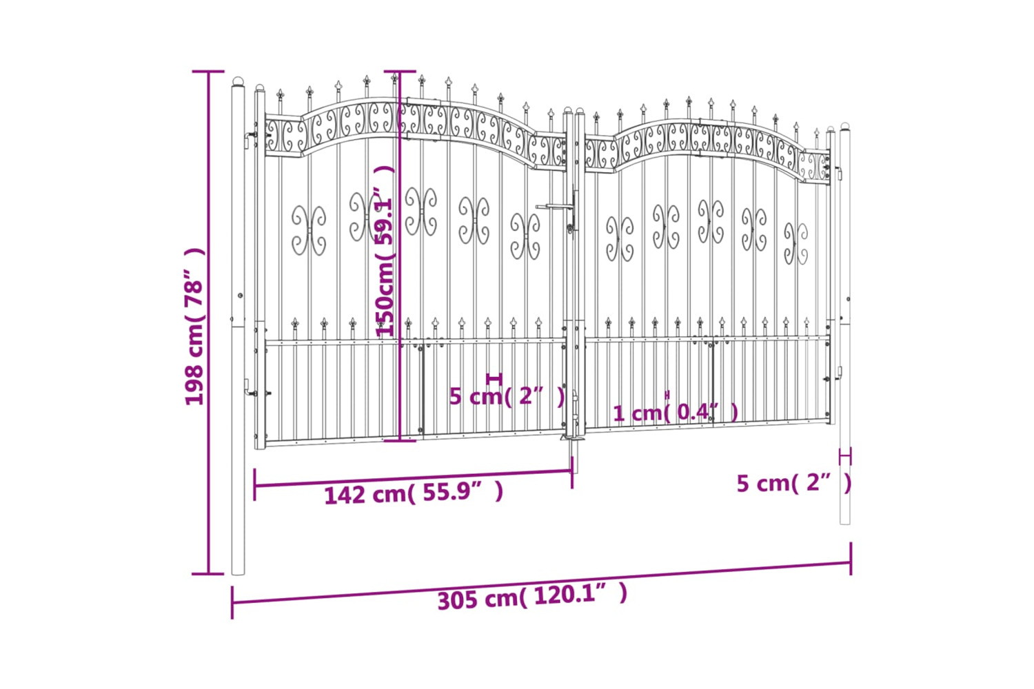 - High-security design: The gate provides a high degree of security with its elegant, arched top design and strong horizontal braces to reinforce the frame while forming a stunning entryway to your property.