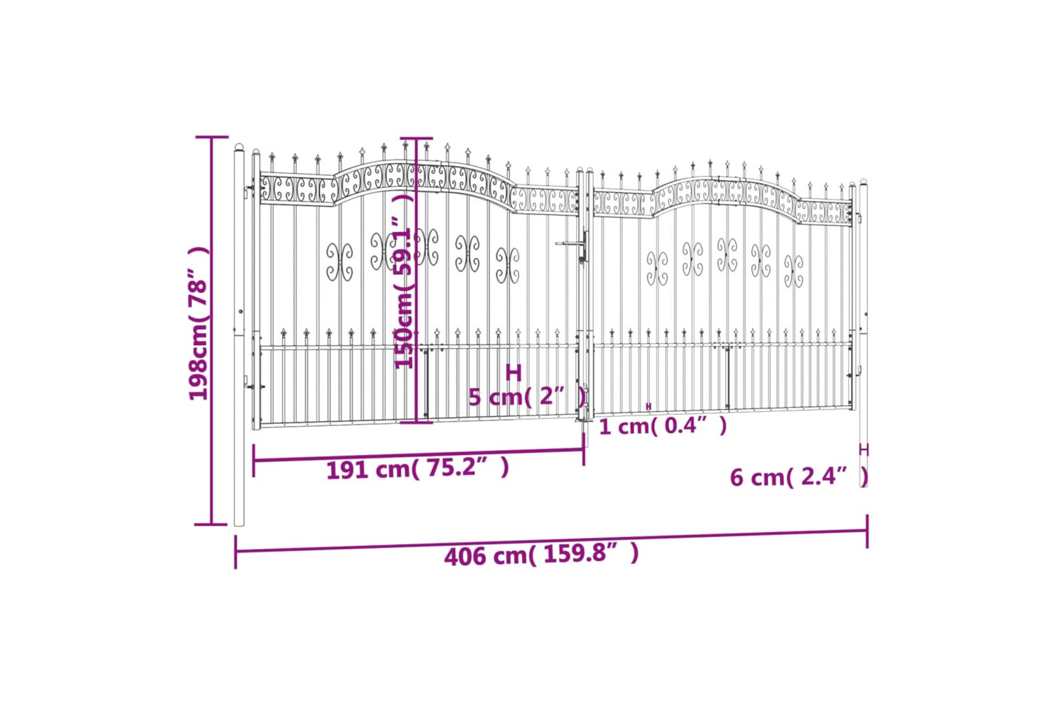 - High-security design: The gate provides a high degree of security with its elegant, arched top design and strong horizontal braces to reinforce the frame while forming a stunning entryway to your property.