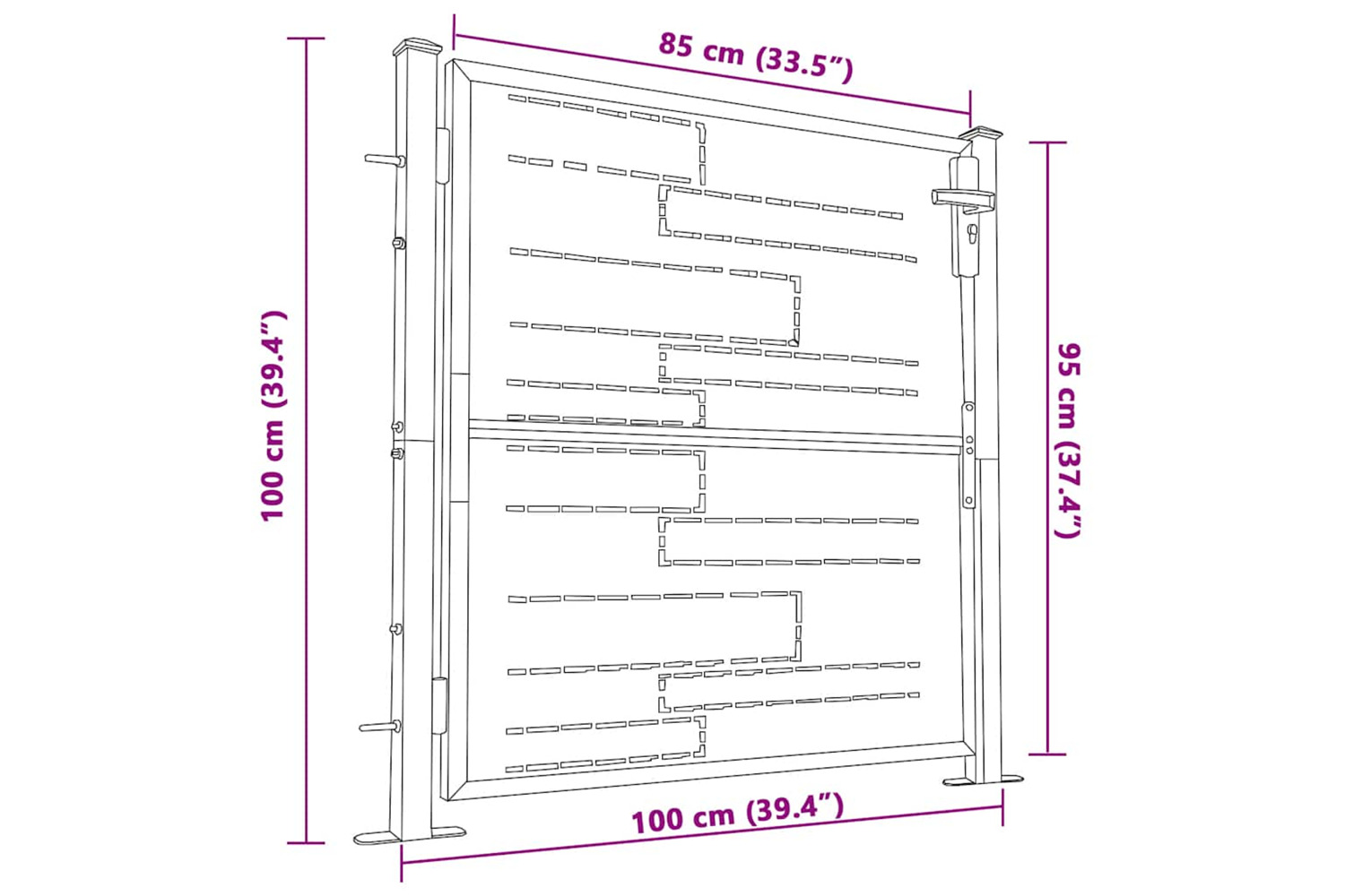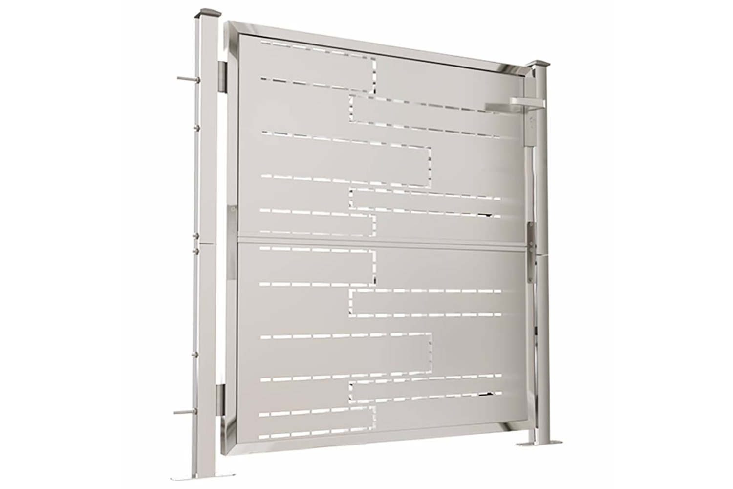 The outdoor gate is made of heavy-duty stainless steel, making it rust-resistant and corrosion-resistant. It also comes with sturdy hinges for easy installation. This garden barrier is equipped with a heavy-duty locking system and three matching keys. The mounting accessories to assemble the patio gate to the ground are included.