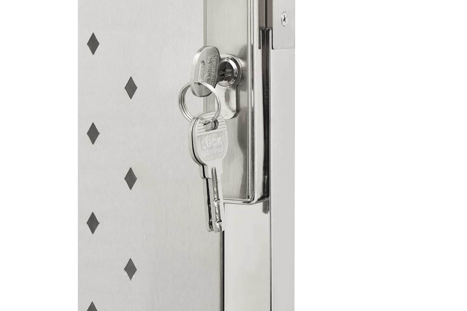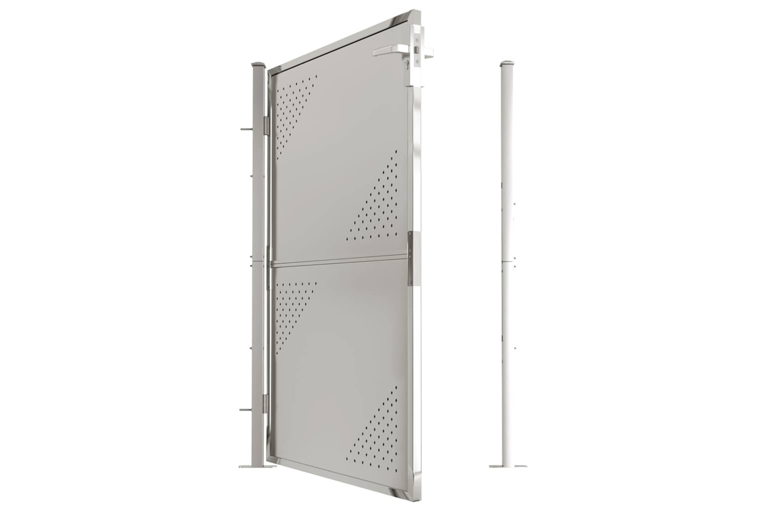 The outdoor gate is made of heavy-duty stainless steel, making it rust-resistant and corrosion-resistant. It also comes with sturdy hinges for easy installation. This garden barrier is equipped with a heavy-duty locking system and three matching keys. The mounting accessories to assemble the patio gate to the ground are included.