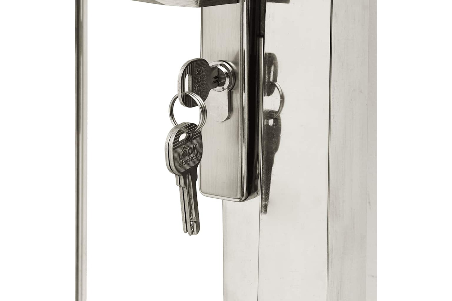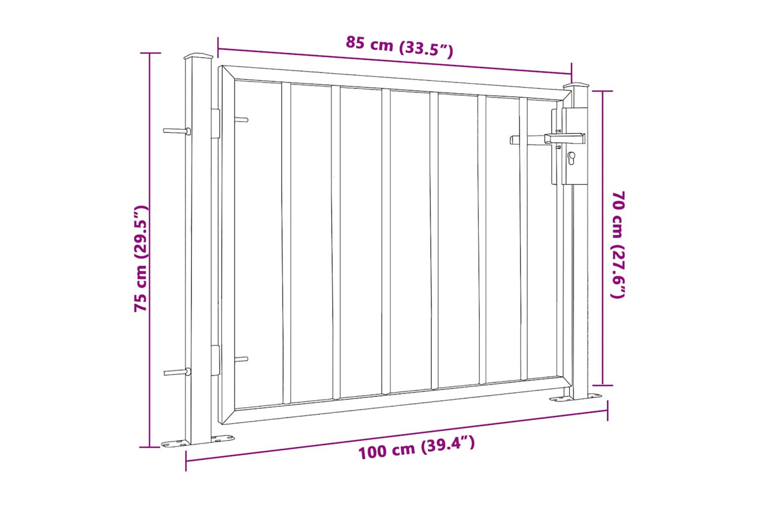 The outdoor gate is made of heavy-duty stainless steel, making it rust-resistant and corrosion-resistant. It also comes with sturdy hinges for easy installation. This garden barrier is equipped with a heavy-duty locking system and three matching keys. The mounting accessories to assemble the patio gate to the ground are included.