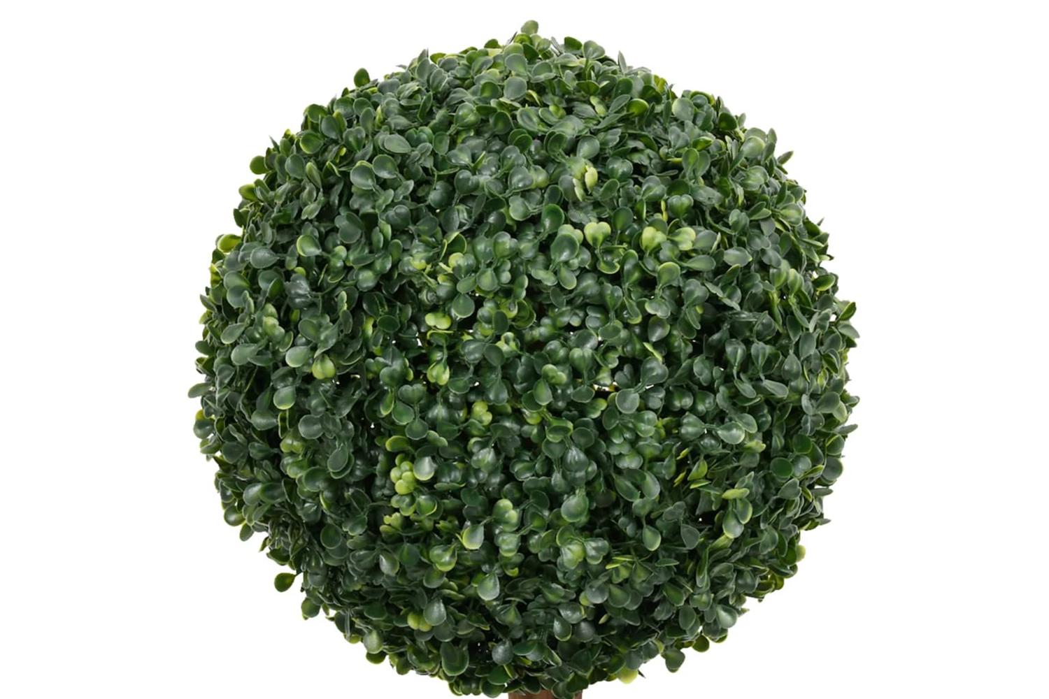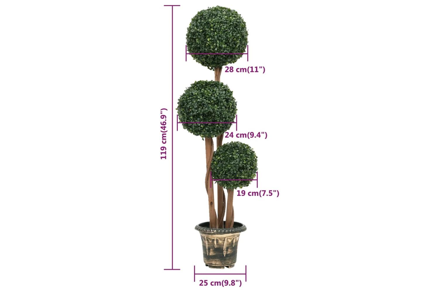 This artificial boxwood plant adds a touch of green to any space, and the triple ball shape is meant to be an eye-catcher in your living space!