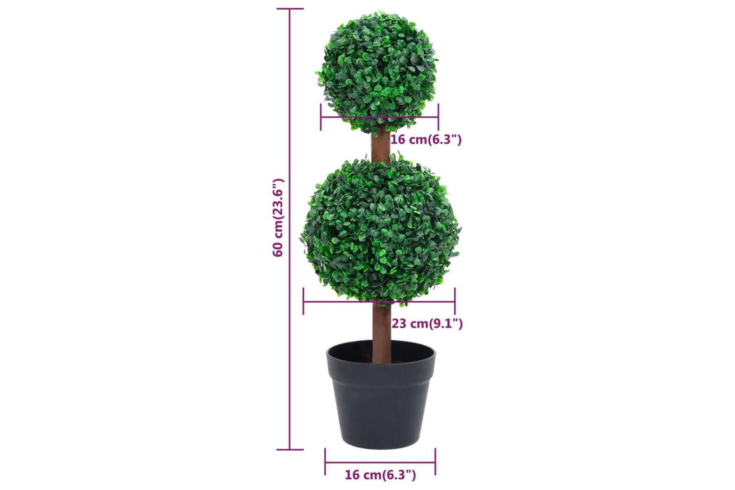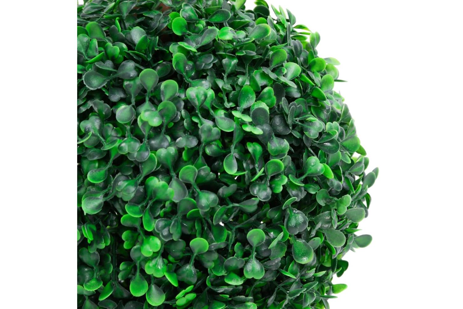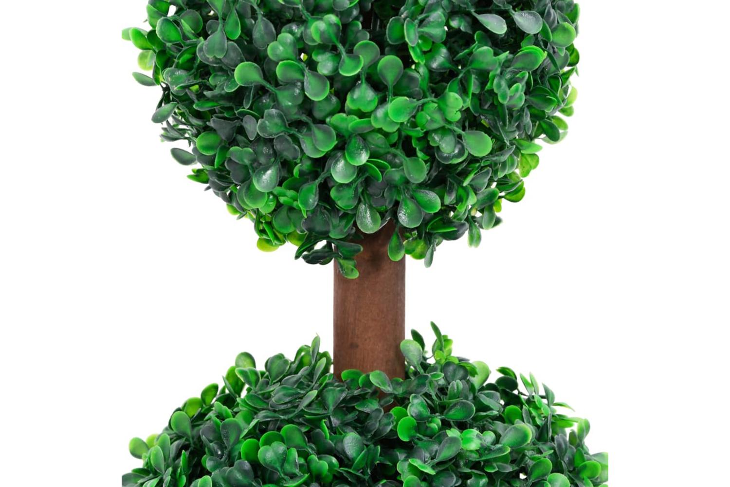This artificial boxwood plant adds a touch of green to any space, and the double ball shape is meant to be an eye-catcher in your living space!