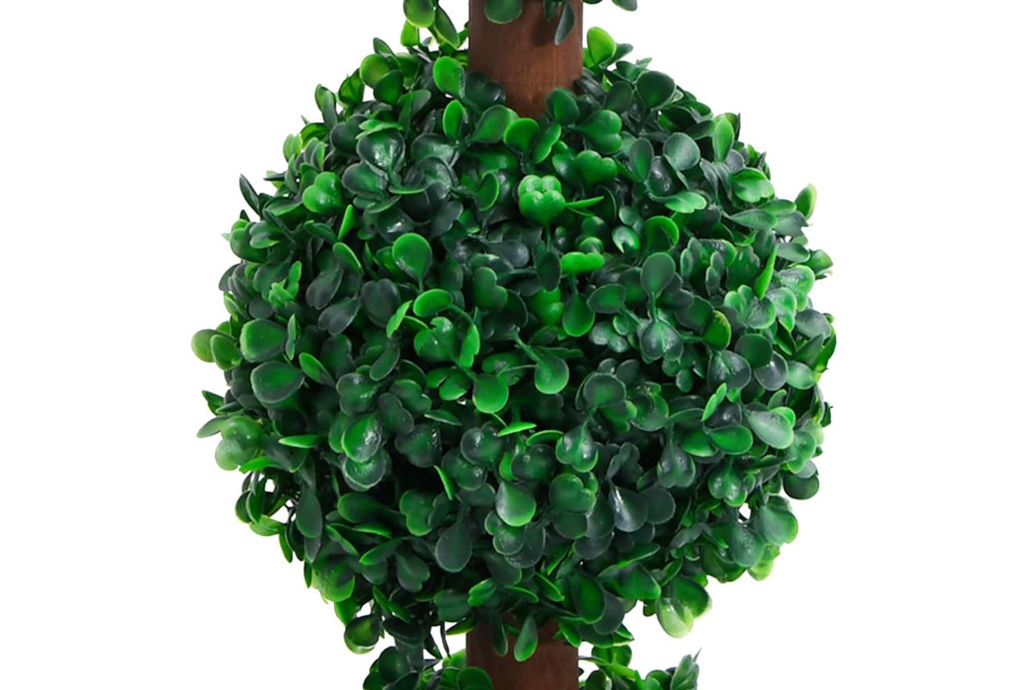 This artificial boxwood plant adds a touch of green to any space, and the quadruple ball shape is meant to be an eye-catcher in your living space!