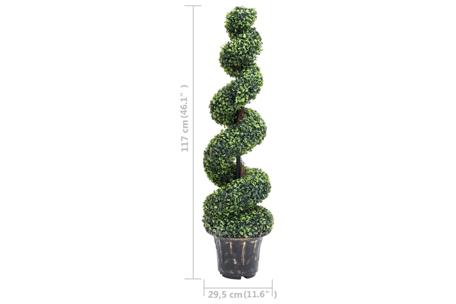 This artificial boxwood plant adds a touch of green to any space, and the unique spiral shape is meant to be an eye-catcher in your living space!