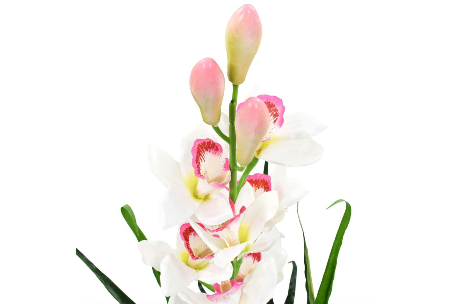 Our beautiful, natural-looking cymbidium orchid plant has 36 leaves and 18 flowers with perfect details, giving it a full and realistic look, and it will never wither. It is ideal for those who do want to have some flowers in their home but lack the time to care for them.