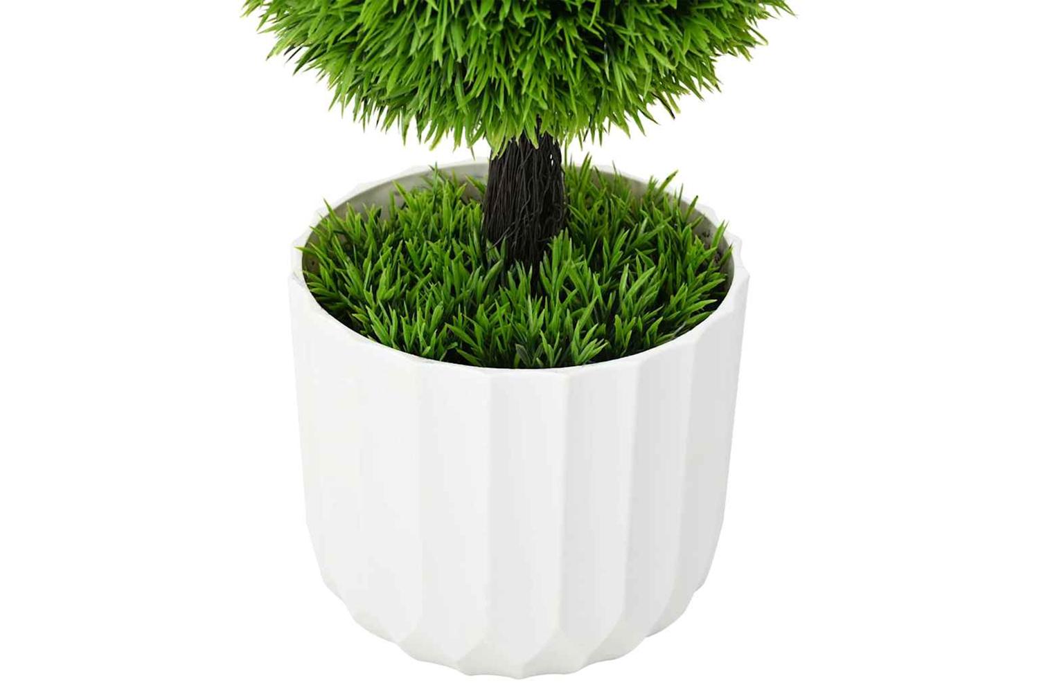 - Quality Plastic Materials This Artificial Plant Topiary Pine is made from top-notch plastic that’s tough enough for both indoor and outdoor use. Its inherent resistance means it keeps its bright look without fading, so it remains a reliable decorative piece over time.